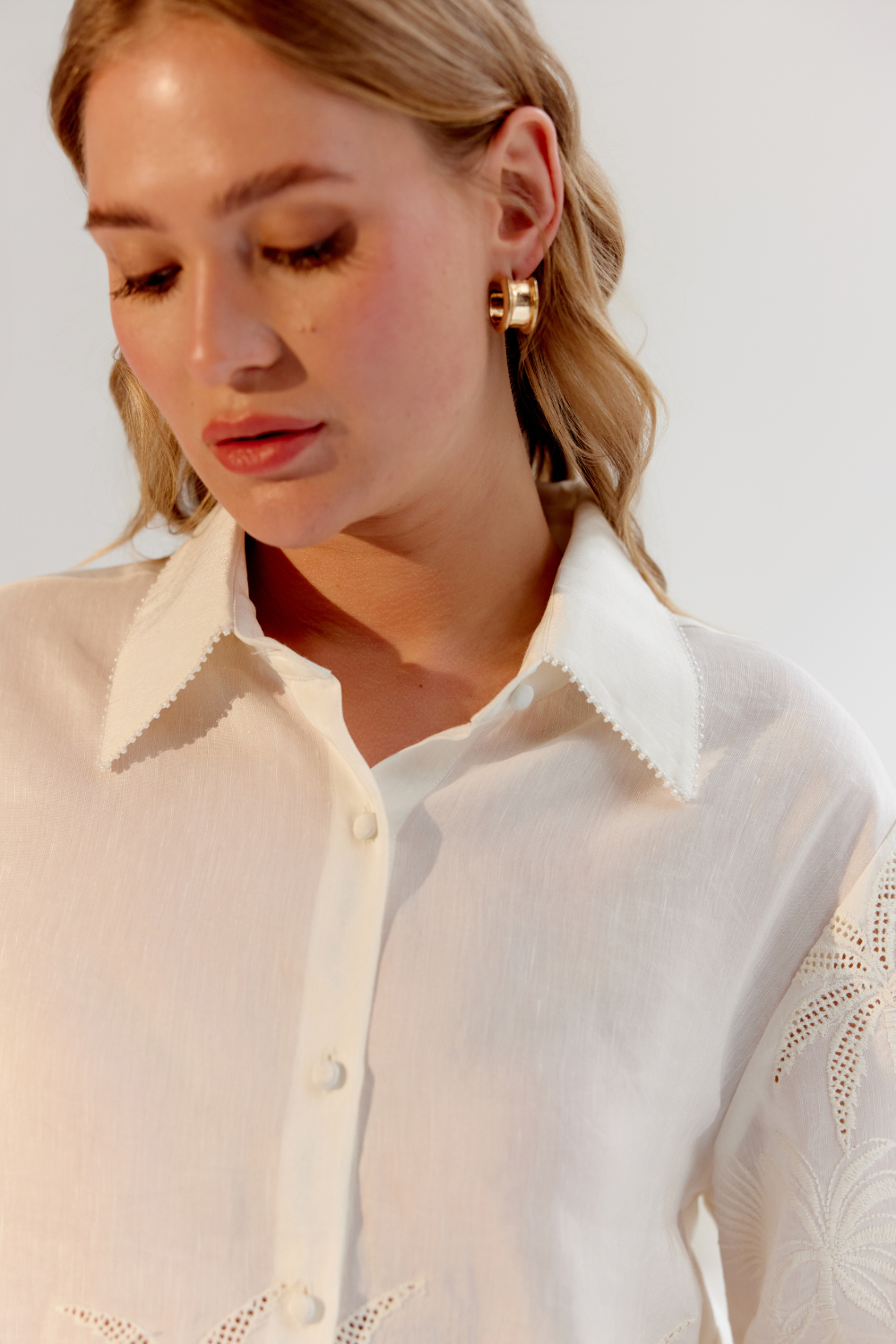 Back by popular demand, the Deya Set, a bestseller from our previous collection, returns as part of NOIB's Spring/Summer 25 collection. This effortlessly chic shirt-and-shorts set is crafted from breathable viscose linen, featuring intricate Schiffli embroidery throughout. Thoughtful beading on the collar adds a touch of elegance, elevating its classic silhouette.