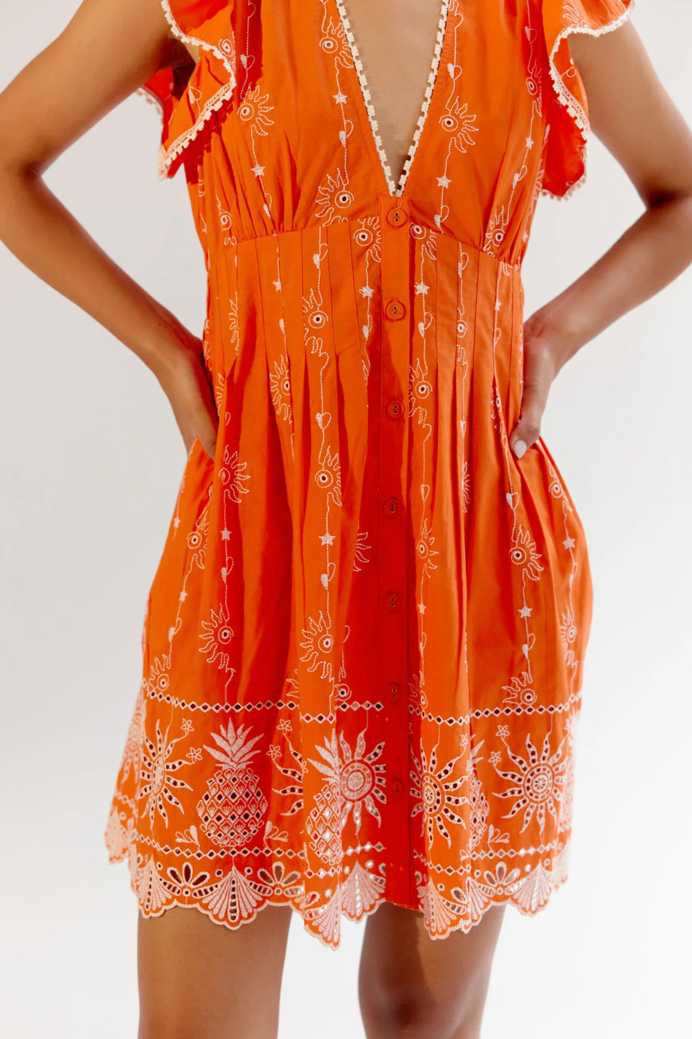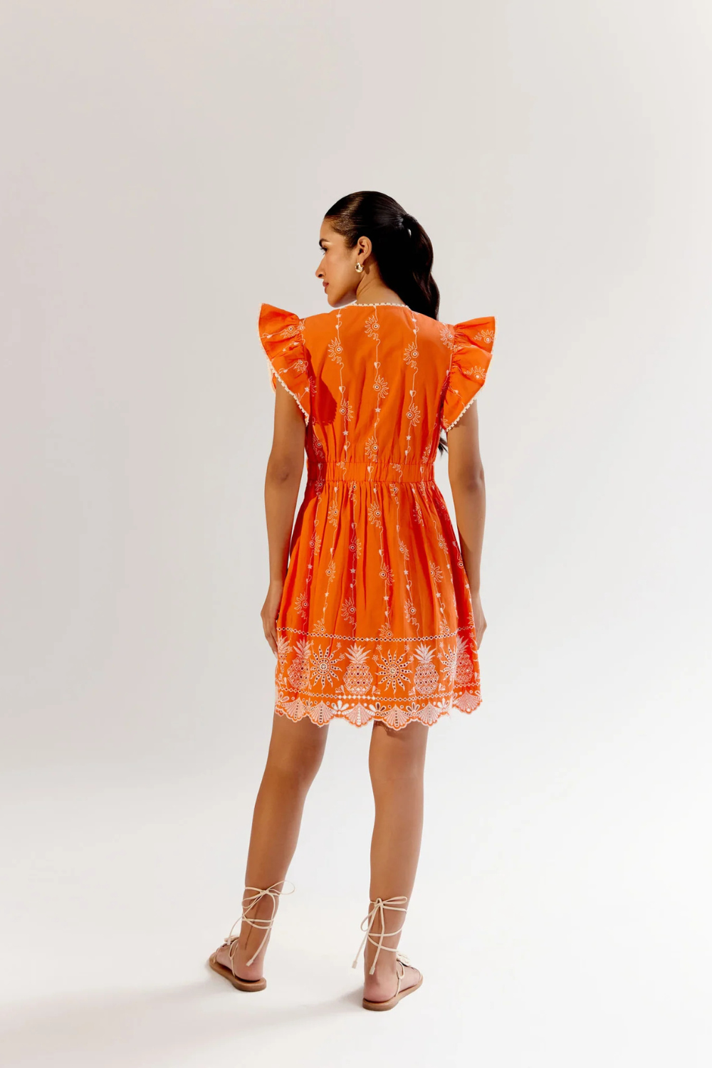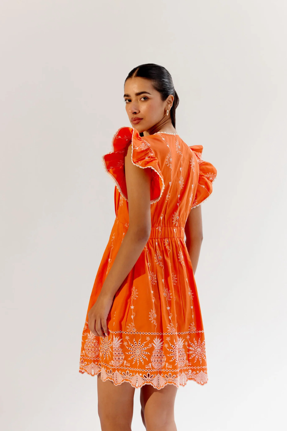 We took our bestselling Estella Maxi and repurposed it into a Mini Dress. The Estella Mini comes in three captivating variations: Boardgame and Flora in soft viscose linen with intricate placement prints, and a vibrant Schiffli Embroidery in Tangerine on luxurious Giza poplin. Delicate lace detailing elevates each variation, adding a touch of timeless elegance to the modern silhouette.