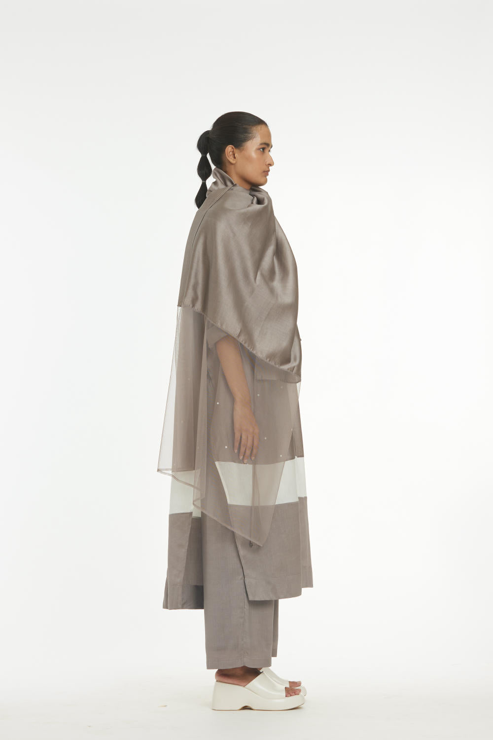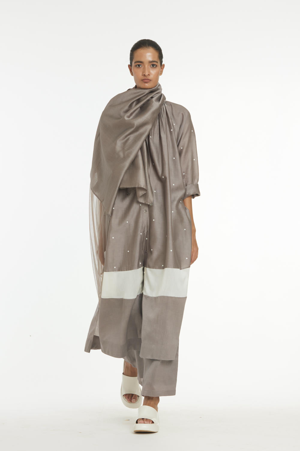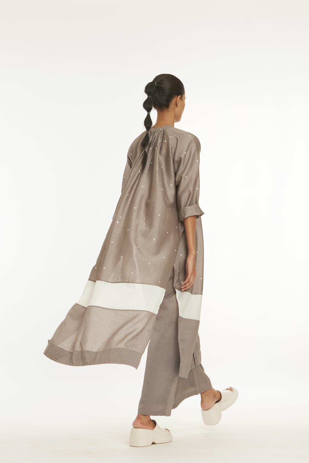 Clever cuts, asymmetric patterns, a neutral palette and simplicity of geometric details form the core aesthetic of the brand. Their love for asymmetry and imperfection clearly reflects in their silhouettes and hemlines. The label is a modern mix of conceptual and wearable clothing which defies age bar as the ensembles exude comfort, more so with their signature anti-fit coords.