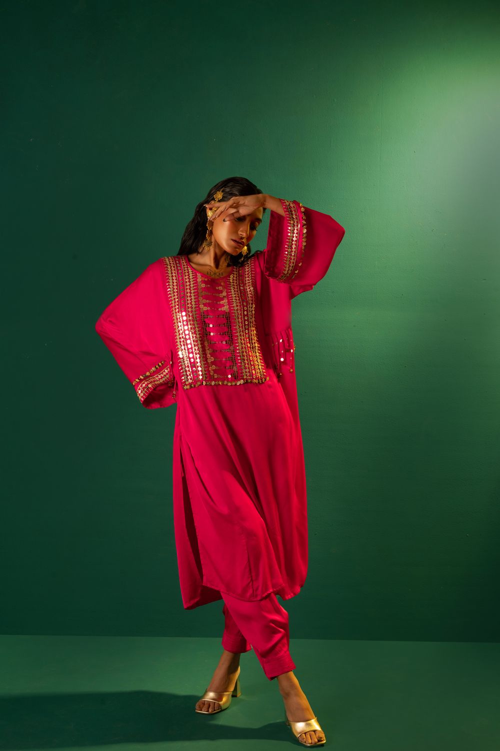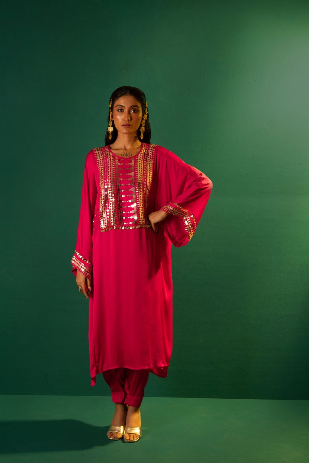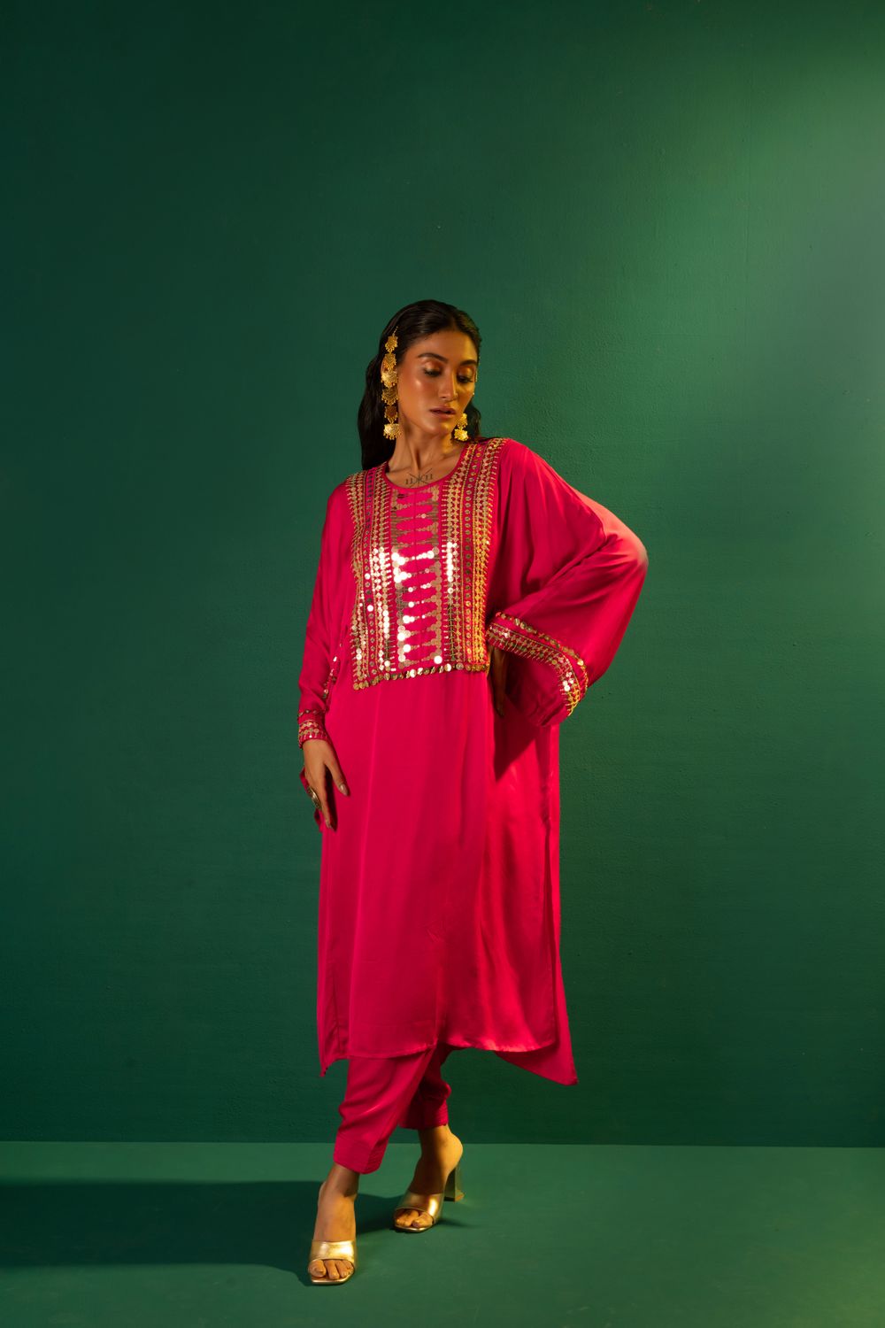 Inspired by moroccon style,featuring choga kurta in fuscia pink,matched with salwar