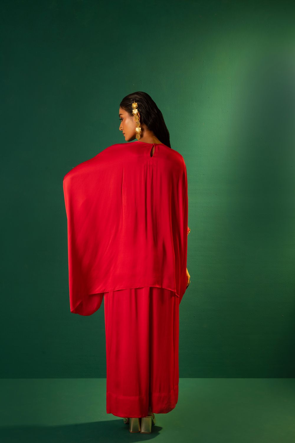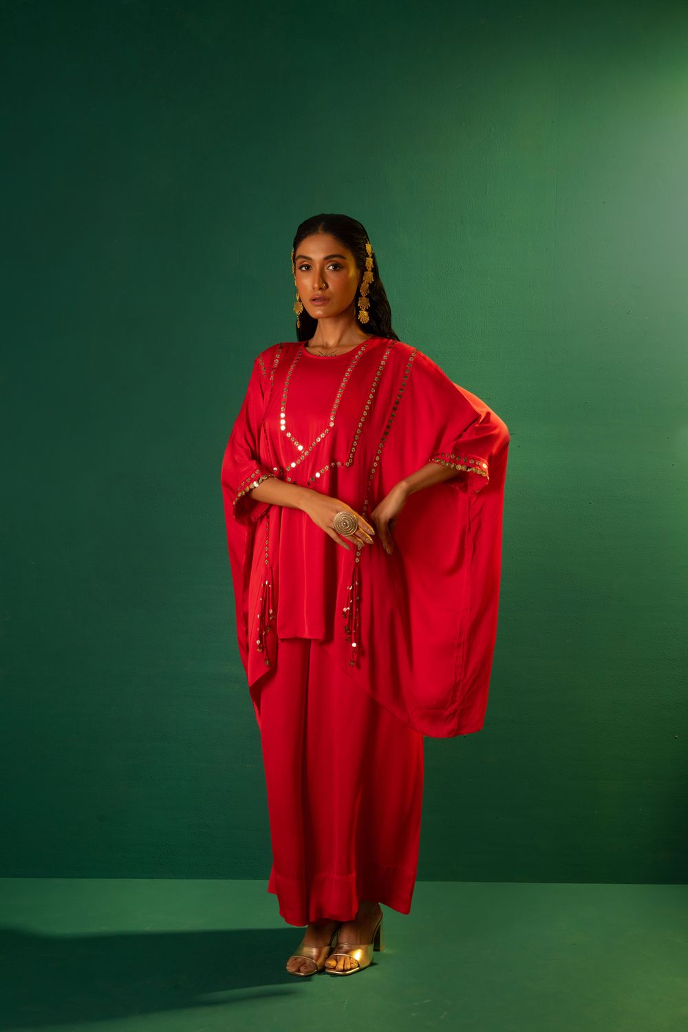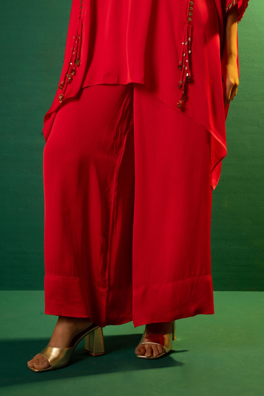 Inspired by traditional yemeni style this antifit tunic co-ord set is embellished with handembroidered lace in mirror like sequin in white gold. The set is completed with oversized pants