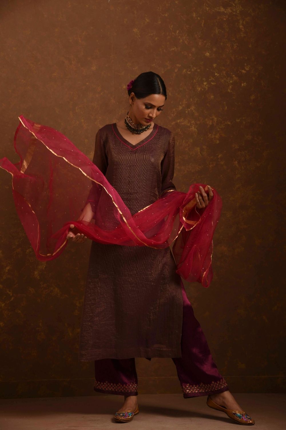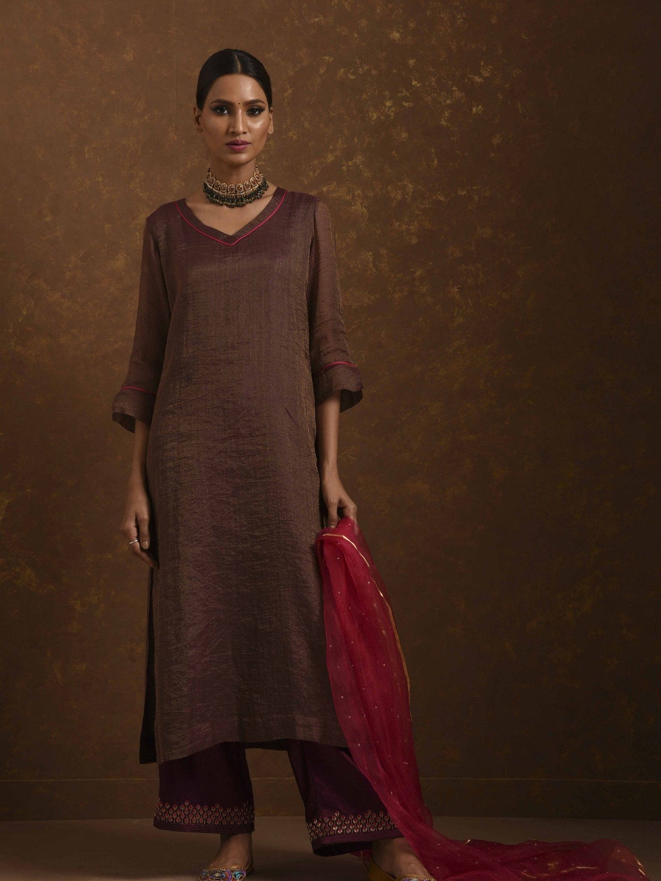Straight fit kurta, Dupatta, farshi Pants, zardozi handwork