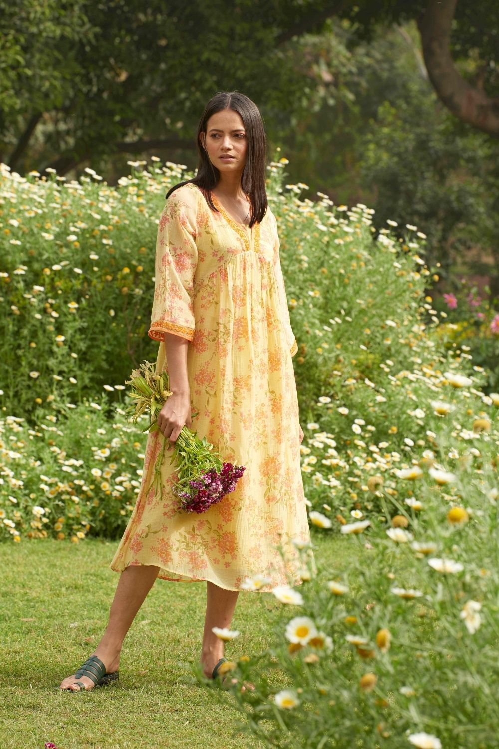 Signature floral flowy dress with pretty thread embroidery