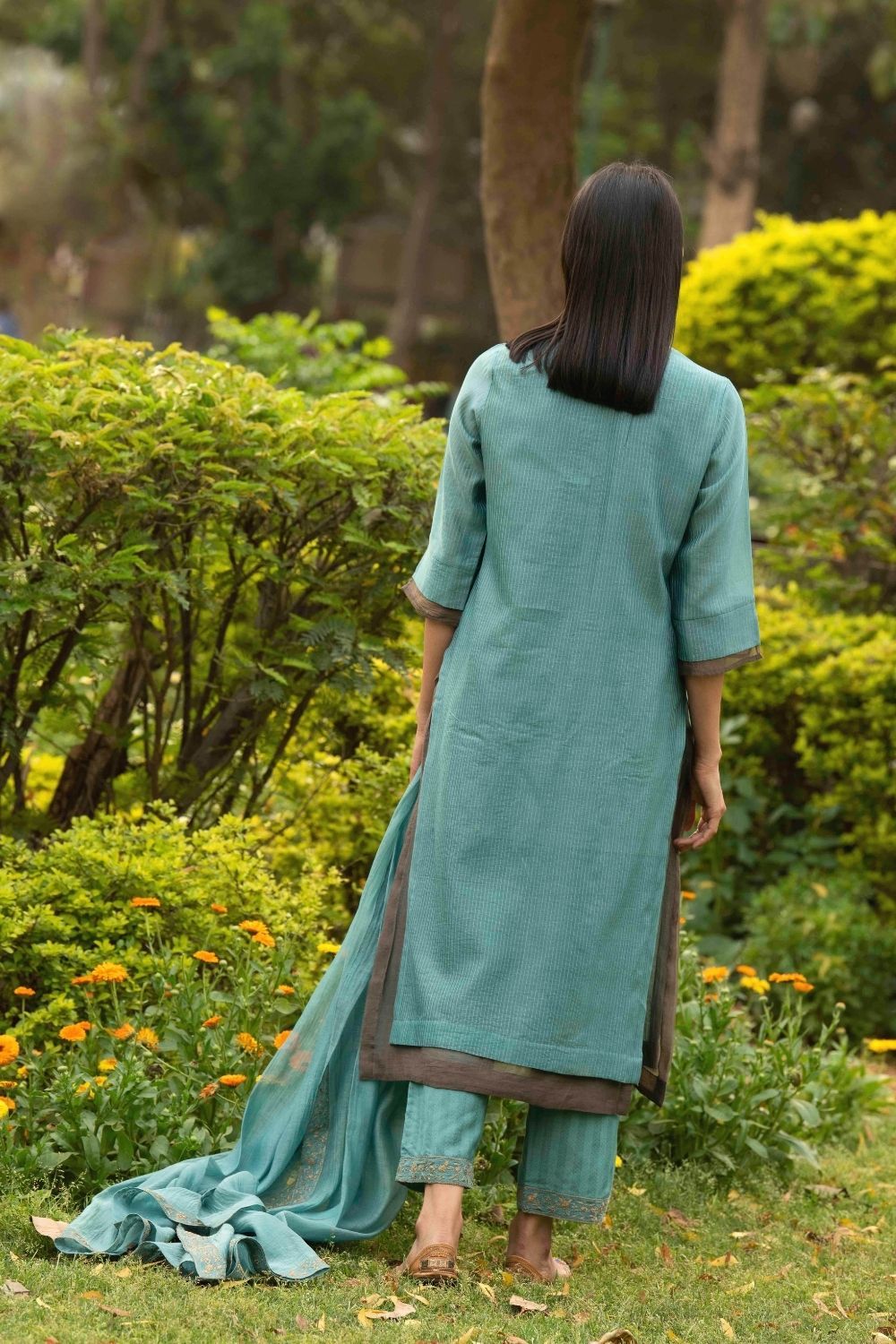 Unusual combination, double layer smart kurta with Till embroidered pants and dupatta