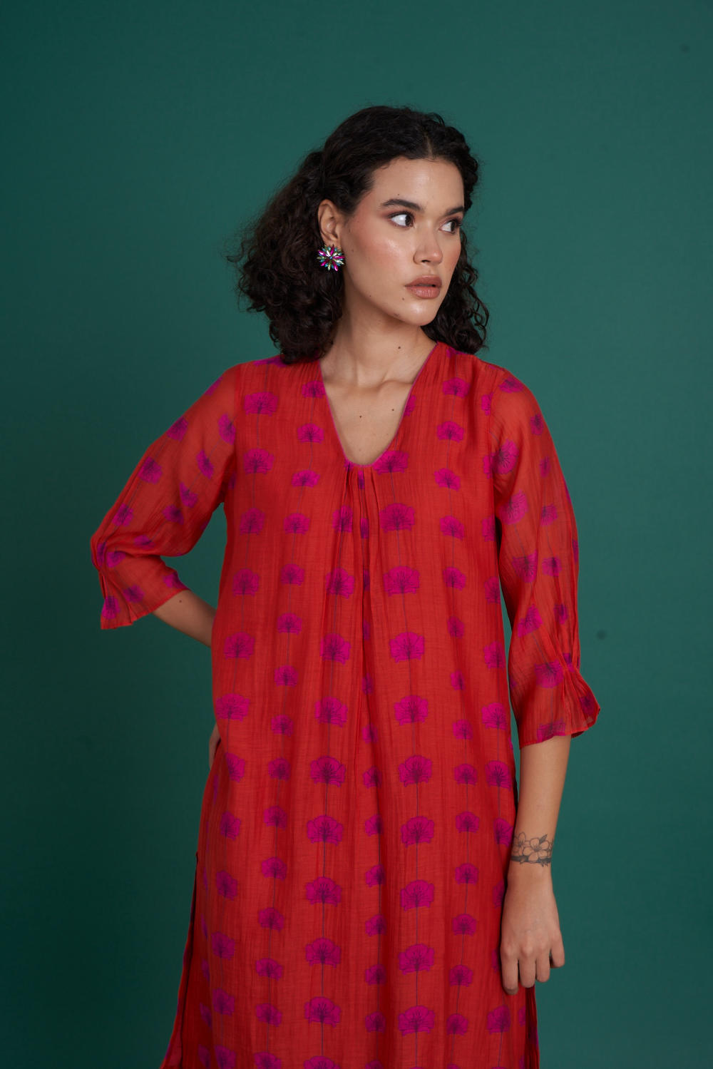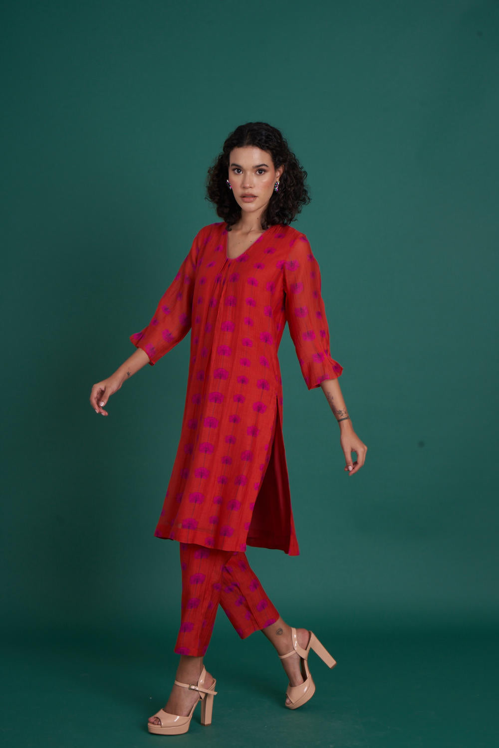 A cotton silk mul Co-ord , made with our signature print style. Comfy set with pockets is a contemporary take on Indian kurta set