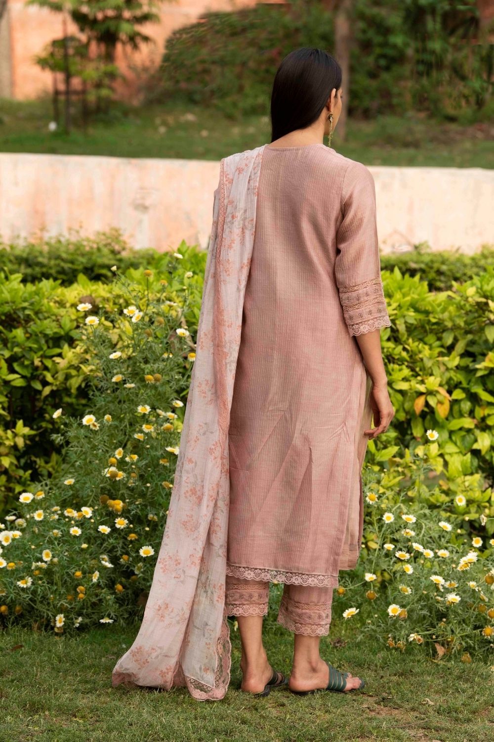 Self stripe heavy bead embroidered smart kurta and pants with mal floral print Dupatta