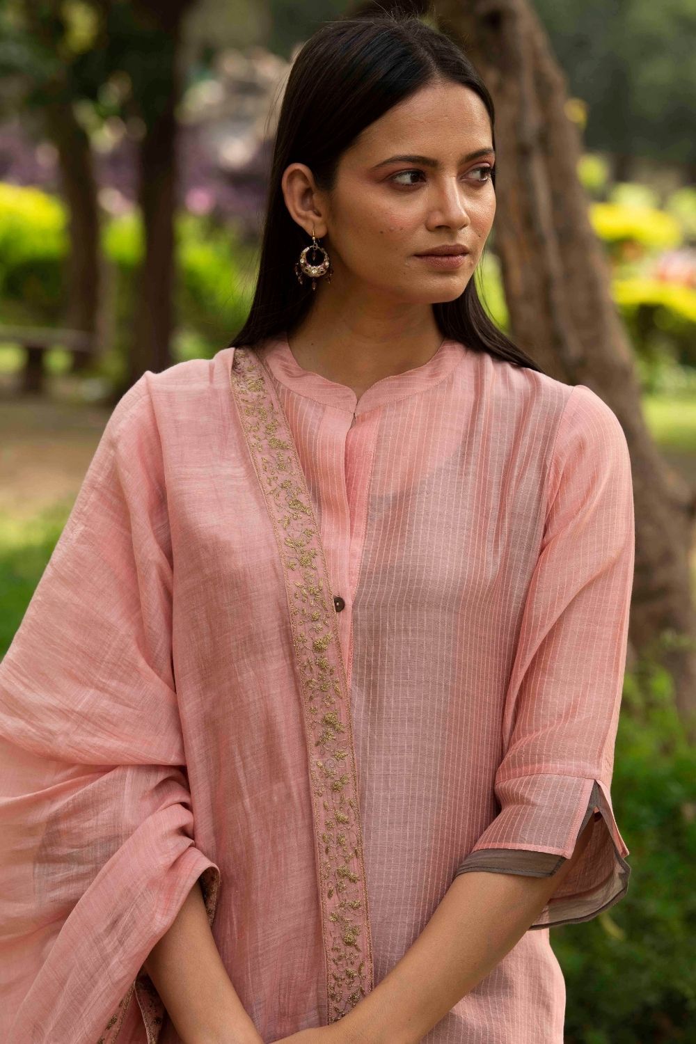 Unusual combination, Double Layer Smart Kurta with Tilla Embroidered pants and Dupatta