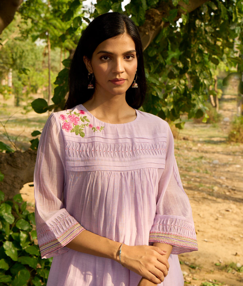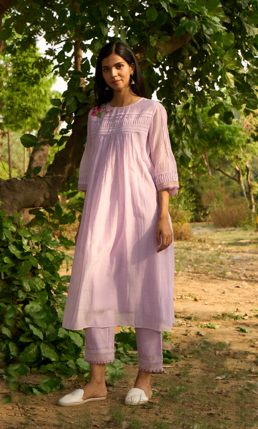 Pleated kurta pant set with soft fabric, delicate pleats, flower embroidery and pleated embroidered sleeve. Embroidered Pant