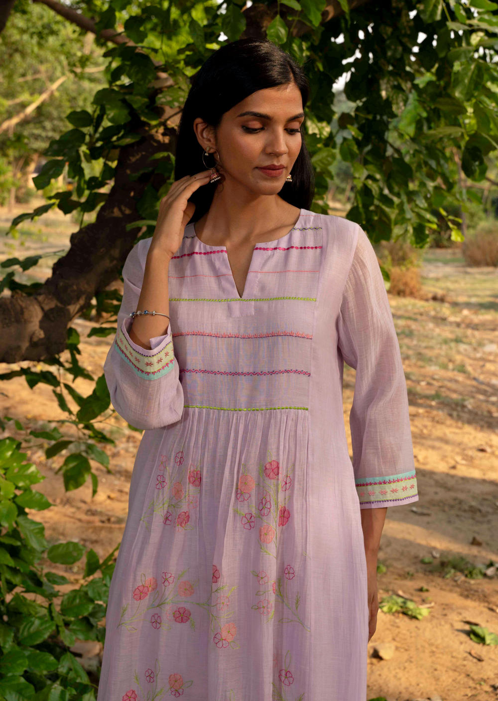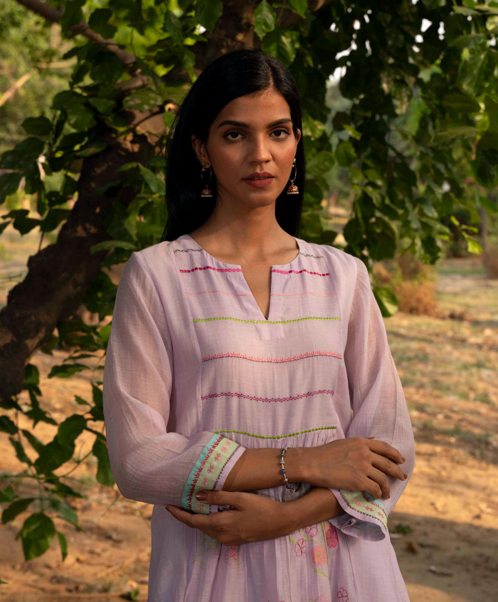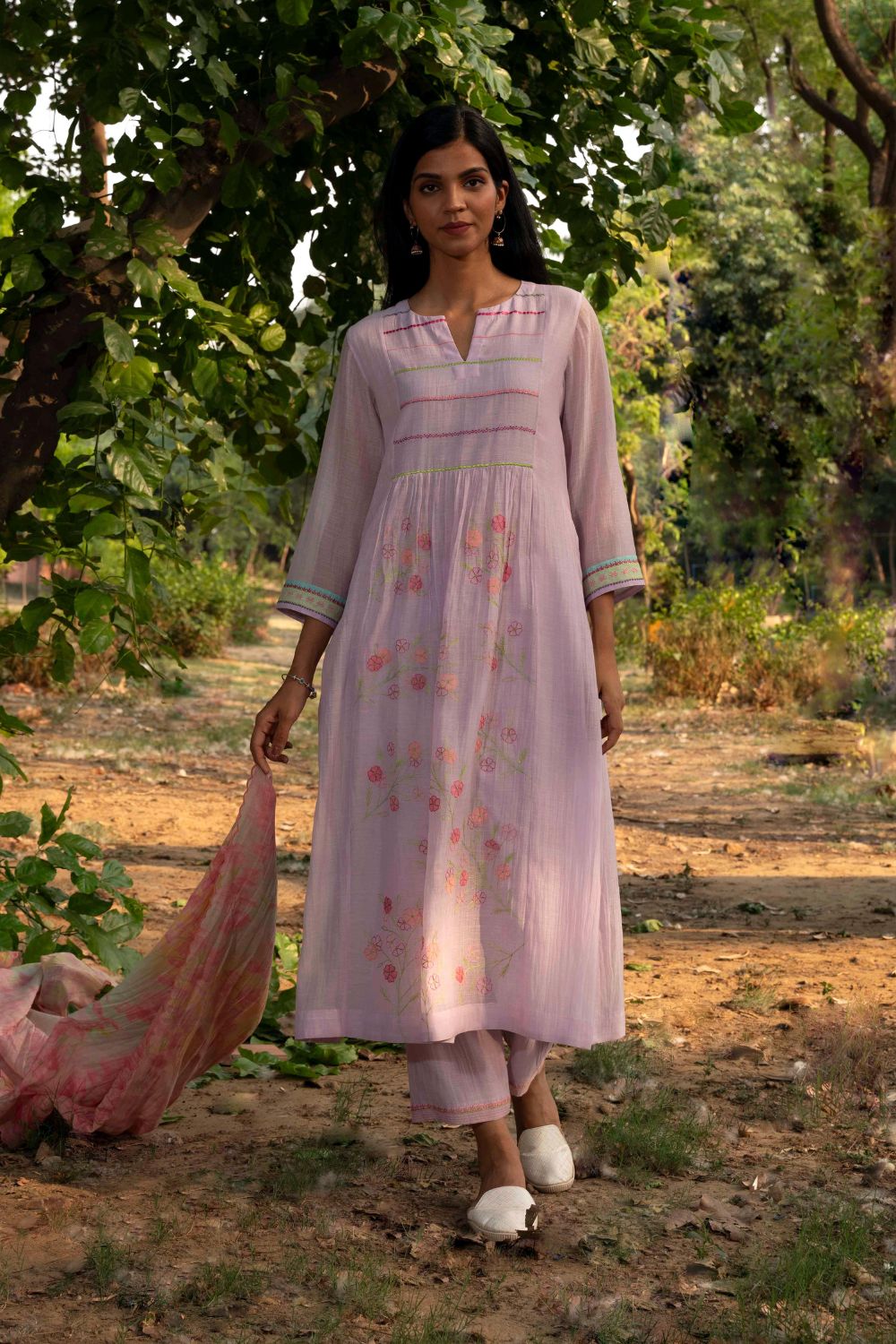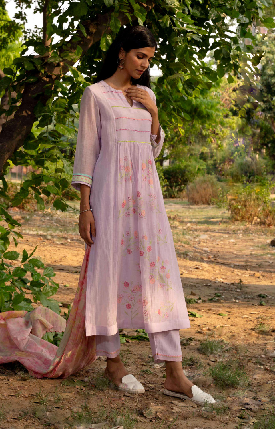Kurta set with floral bel pattern embroidery. Beautiful floral printed dupatta and embroidered Pant.