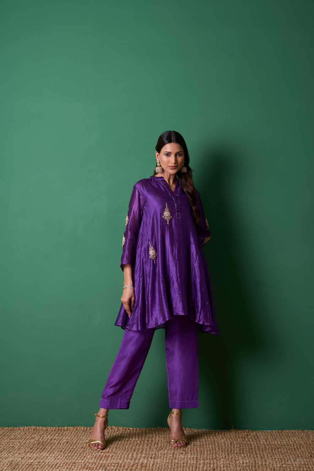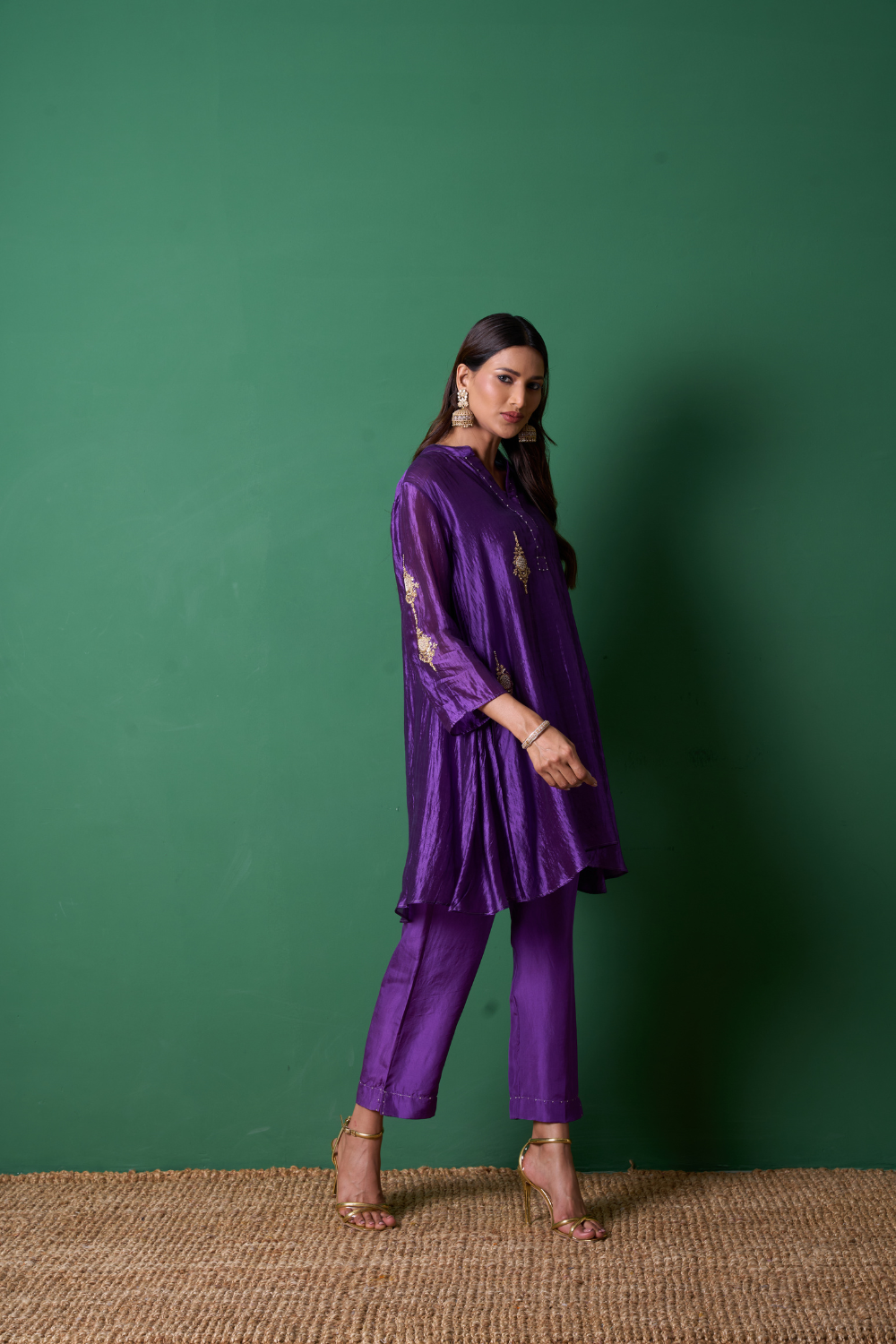 Cord Styled relaxed fit Top and pants with delicate zardozi and bead work on front , back and Sleeves. Embroidered Pants