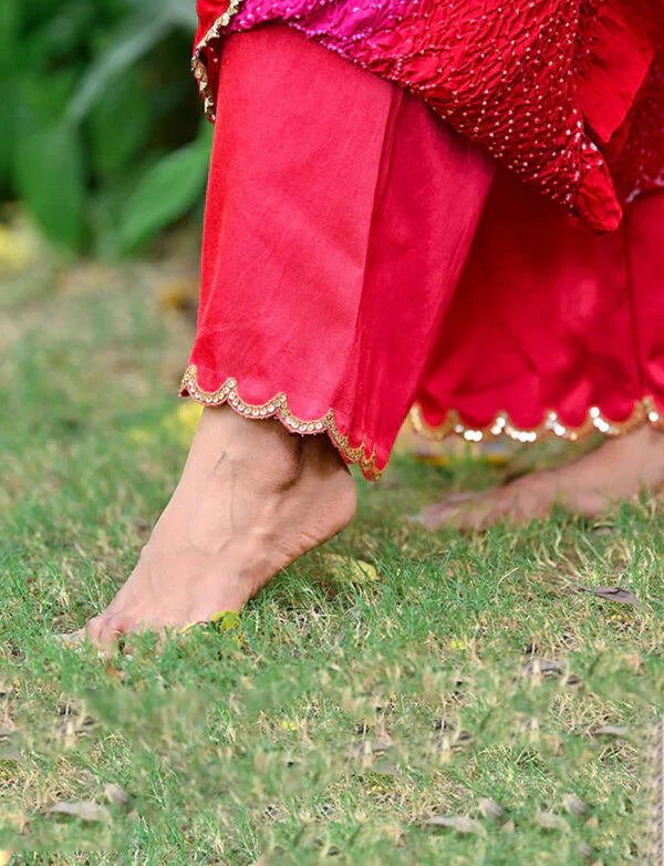 Scallop pants with an embroidered edging in Gajji Satin Silk.