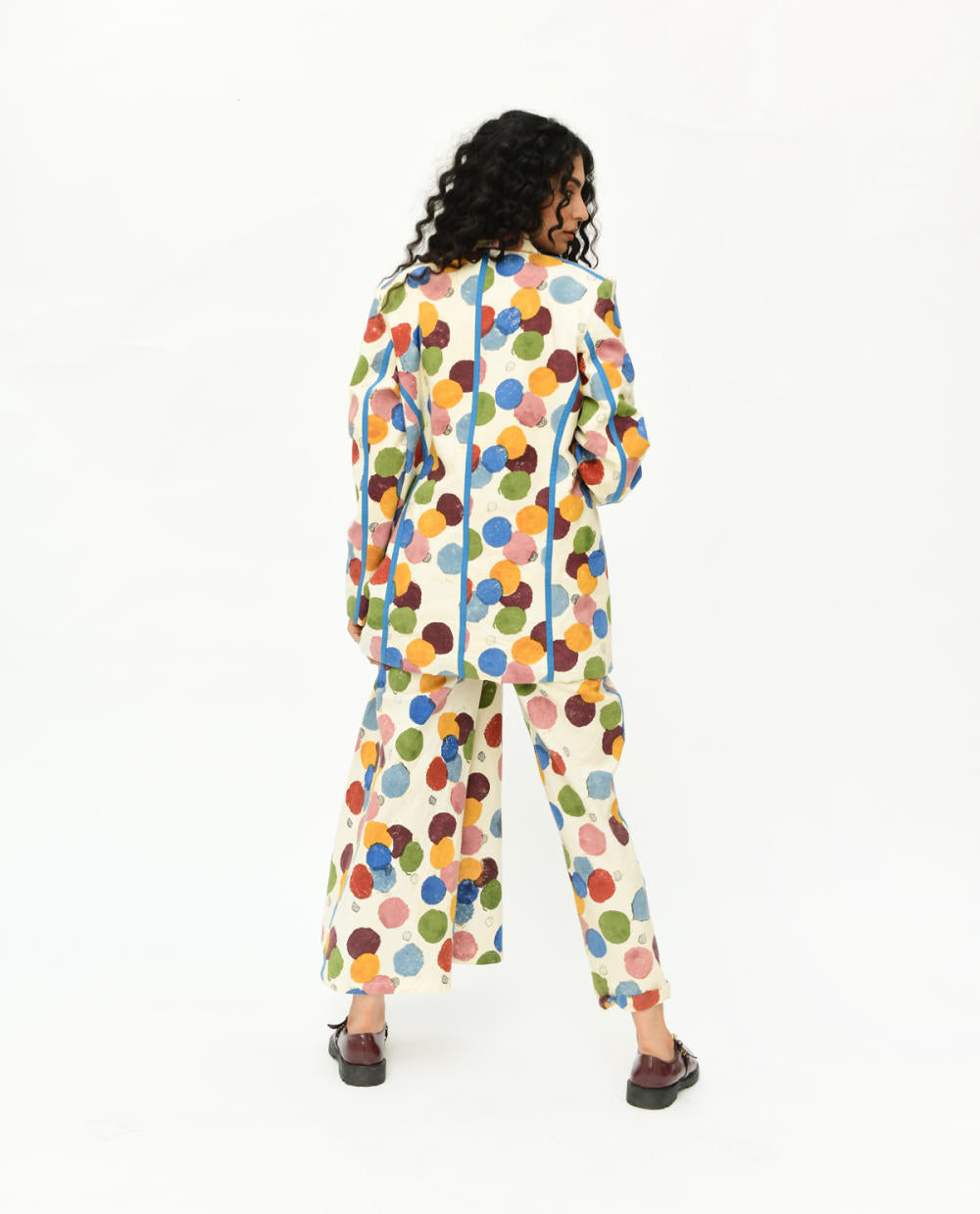 Dabu/Bagru from Rajasthan and hand block printing over handwoven fabrics from Bengal. RIAS calls it a “cocktail” of craft traditions, but it feels more like a conversation—between regions, between histories, between the past and the present. Their studio becomes the meeting ground where ancient mud-resist techniques and handwoven textiles find new relevance through contemporary design.