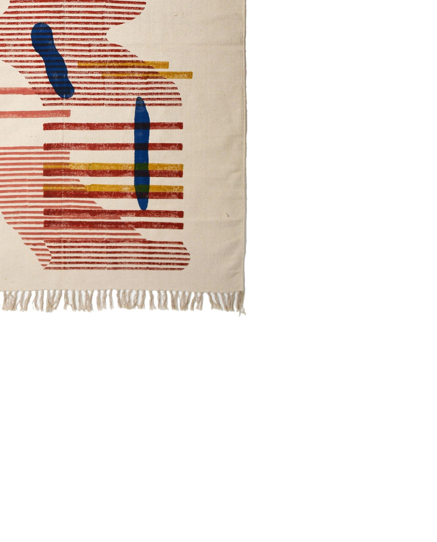 Dhurries, made using handspun Khadi, which is handwoven meticulously by diligent craftsperson from Banskho, a village in Rajasthan. Subsequently these Dhurries are handprinted in Bagru by master artisans.