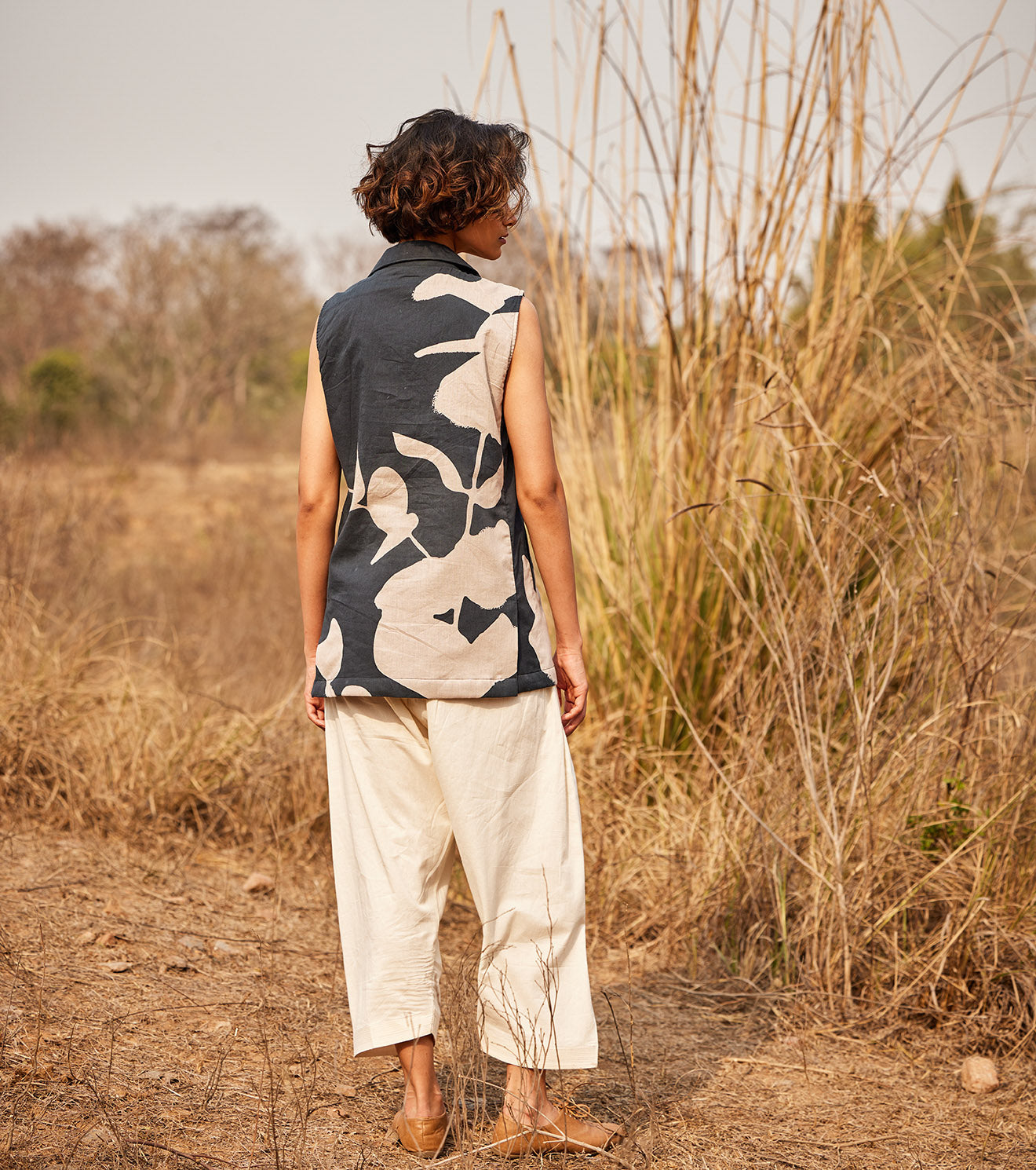 A monochromatic statement printed waistcoat crafted in breathable cotton mul fabric. c - Handcrafted in India.