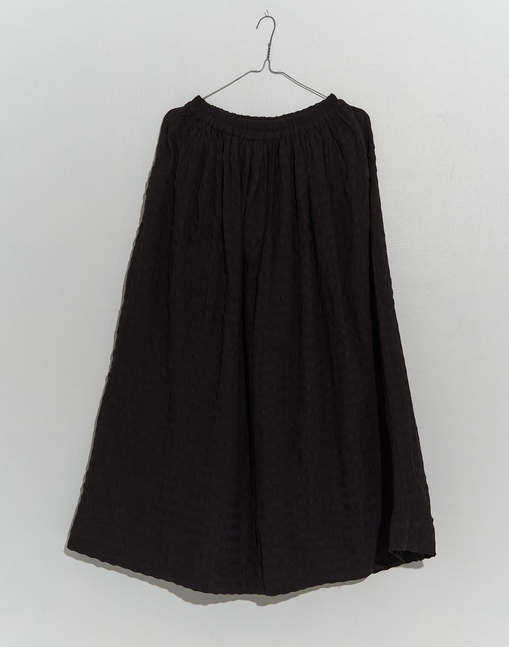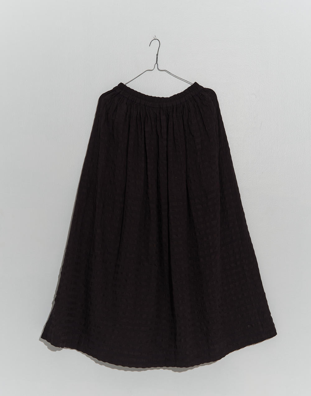 This A-line midi skirt features an elasticated waist for a customizable fit. It's both fashionable and practical. The seersucker fabric adds texture and depth to your look, making it a versatile choice.
