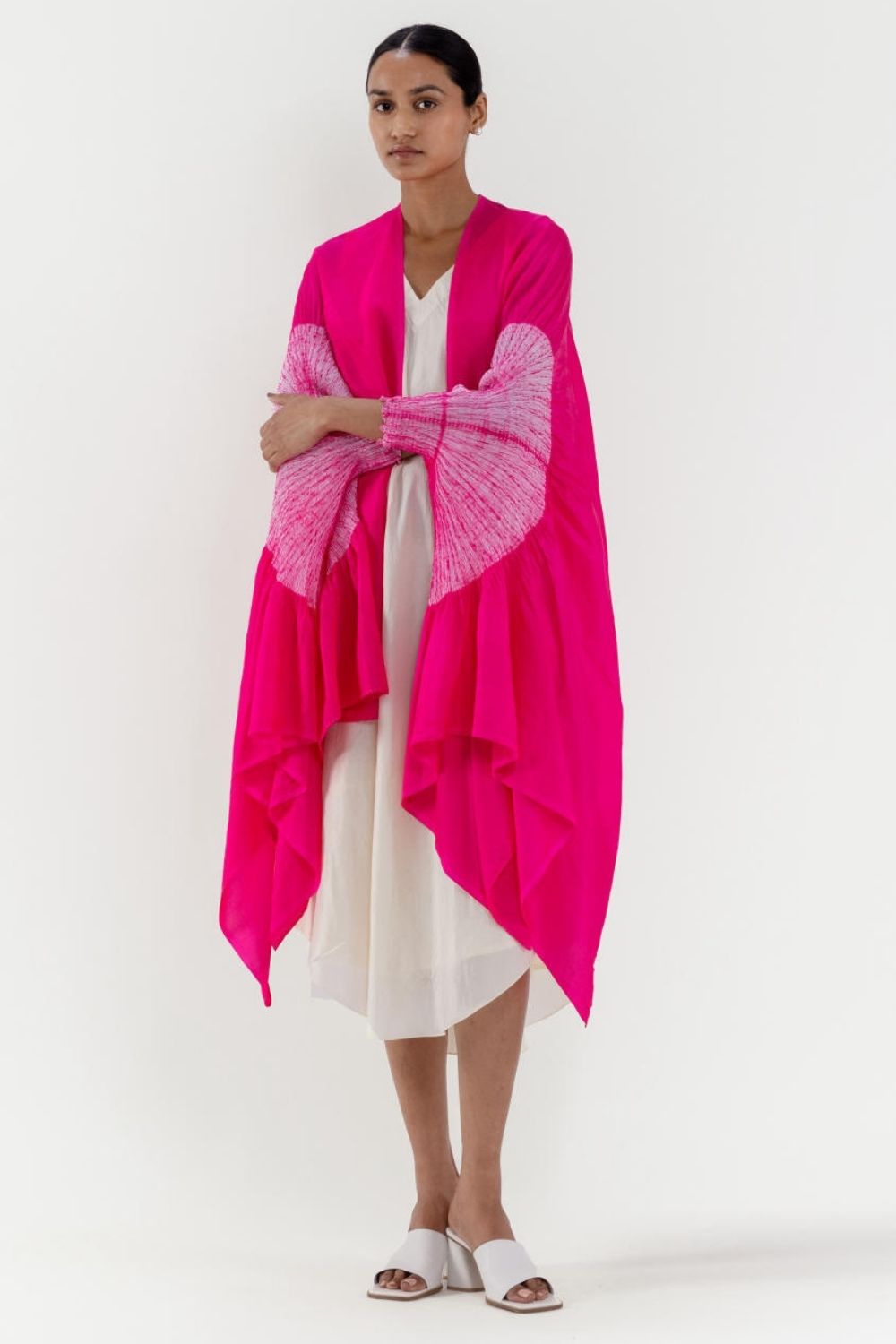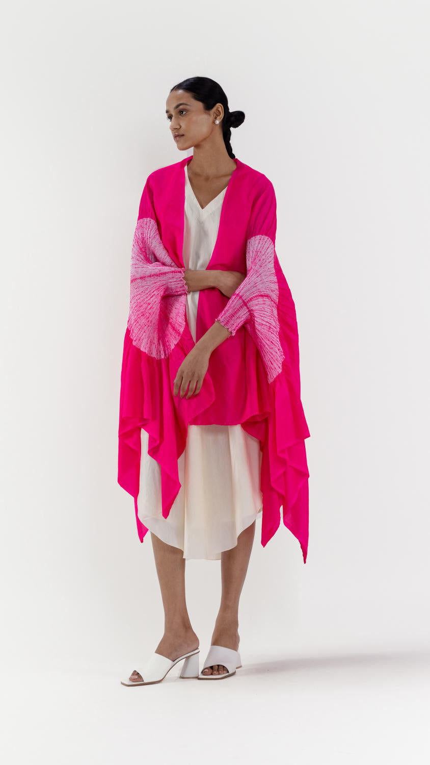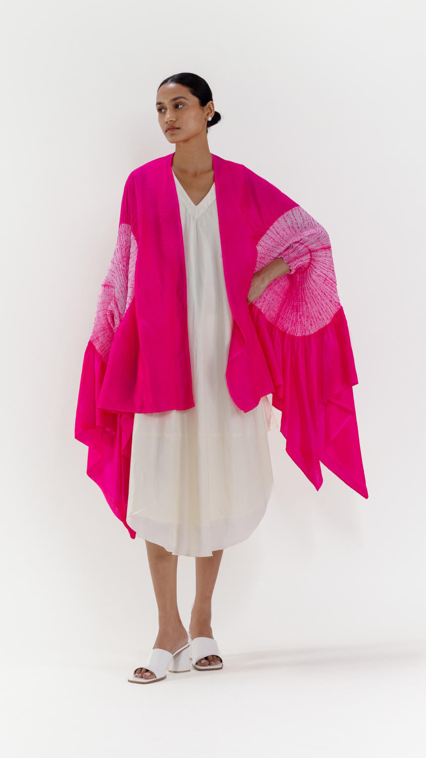 Free-size cape with our signature shibori sleeve dyed in fuchsia