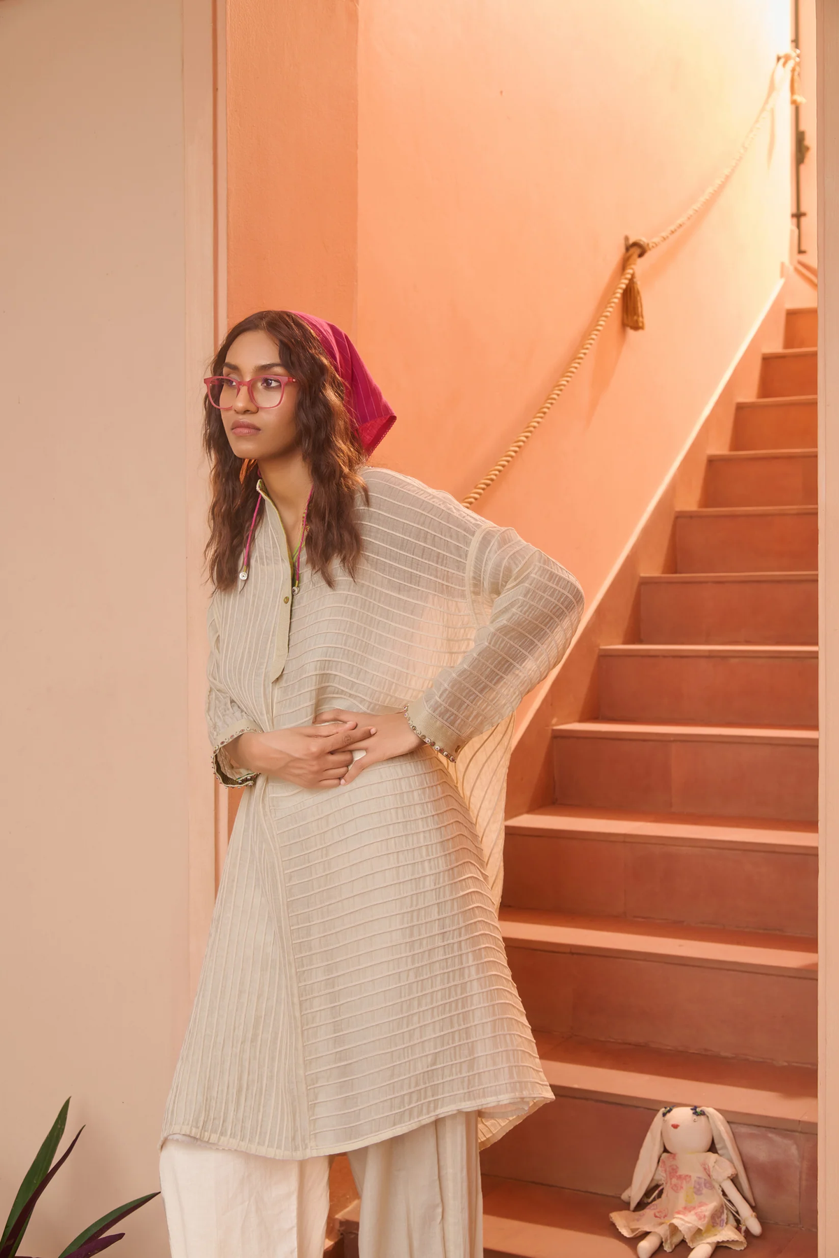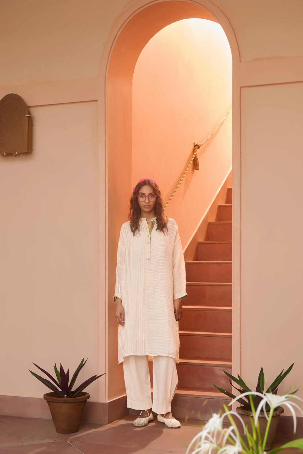 What sets Swatti Kapoor apart is the way she treats textiles as living beings — each with its own temperament, rhythm, and voice. Her garments don’t impose; they evolve. They drape the way water slips over stone. They hold the kind of ease that comes only from deep respect for material and maker.