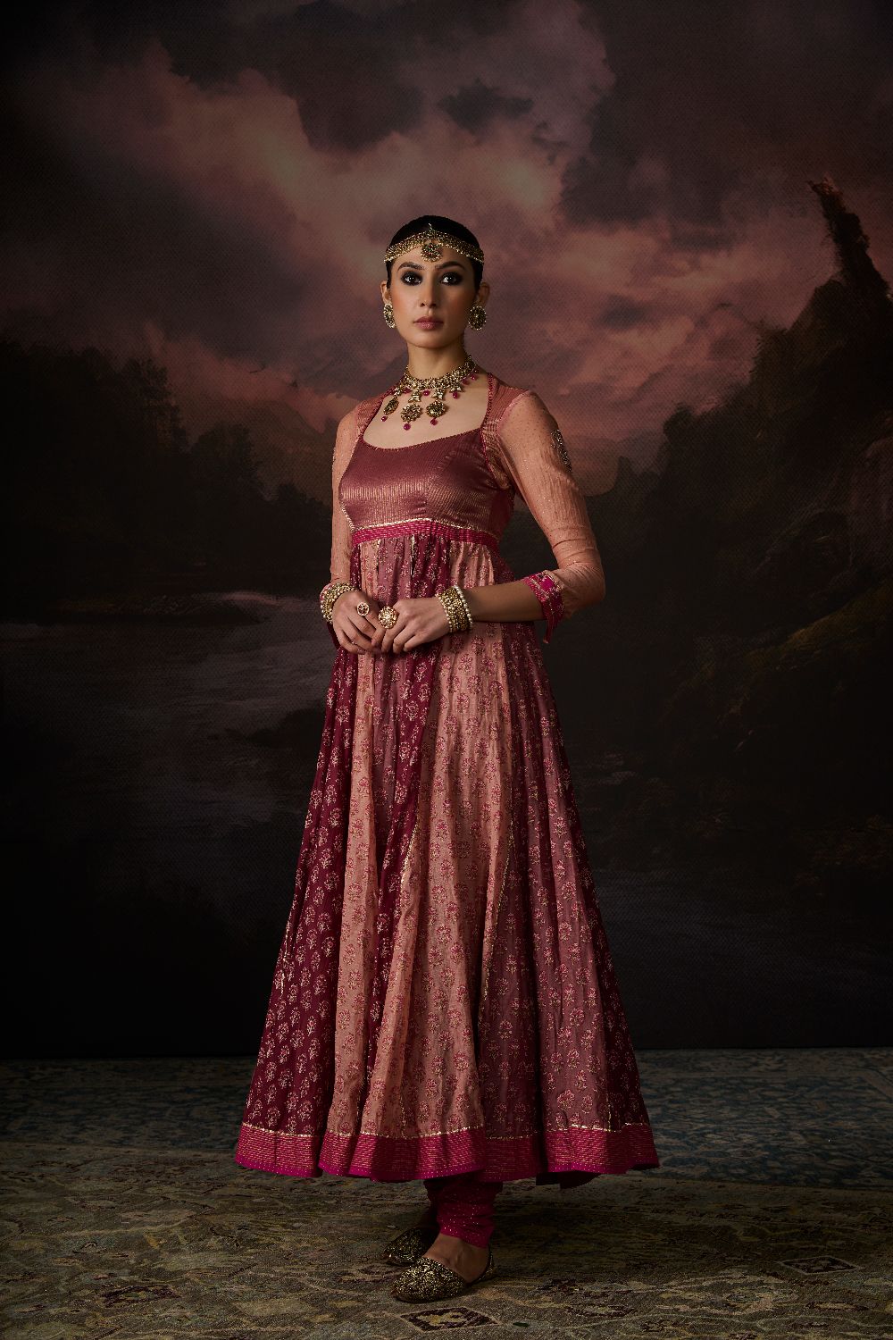 Her Chanderi carries its signature translucence and soft sheen, but with a subtlety that feels almost ethereal — printed slowly, consciously, through hand block printing that heightens the fabric's inherent delicacy.