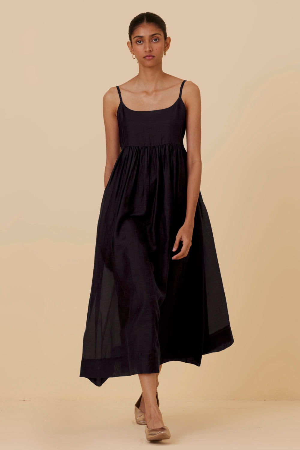 Sleeveless midi dress crafted from lush cotton silk. In-seam pockets. Side zip fastening for easy slip on. This dress is fully lined.
