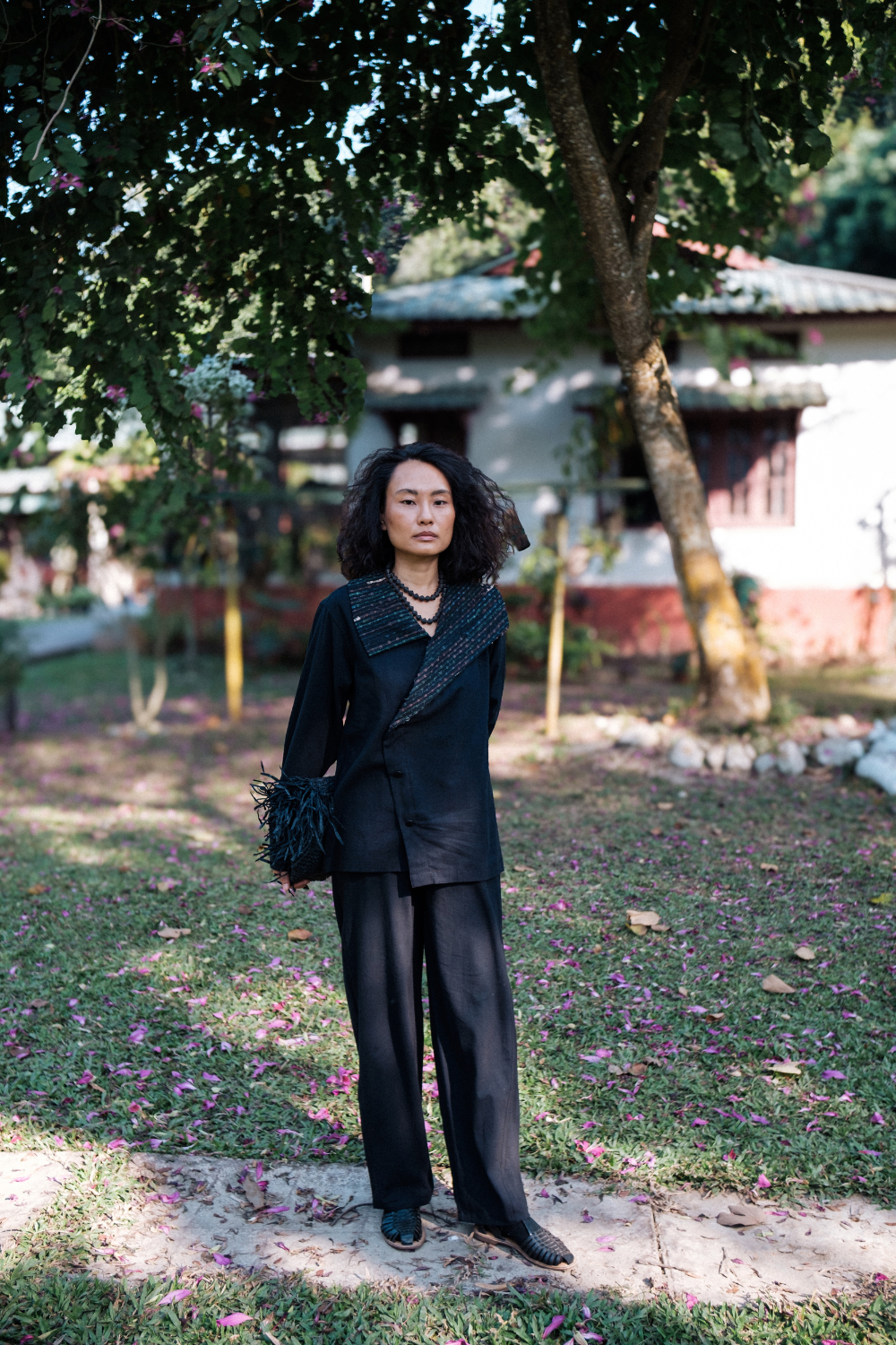 Charmee’s work doesn’t chase seasonal novelty. Instead, she builds garments through the lens of regenerative thinking: plant-based fibres, non-toxic dyes, biodegradable materials, conscious pattern-making, and silhouettes designed to circulate, not accumulate. Every piece begins with the question, “How lightly can we live?”