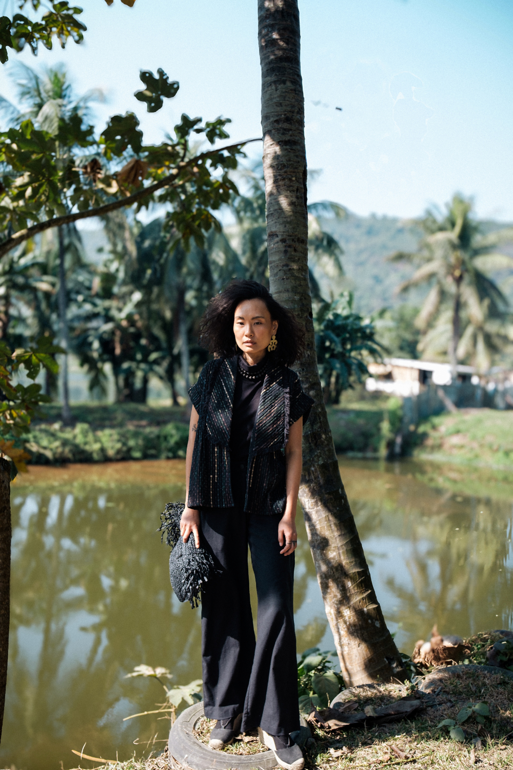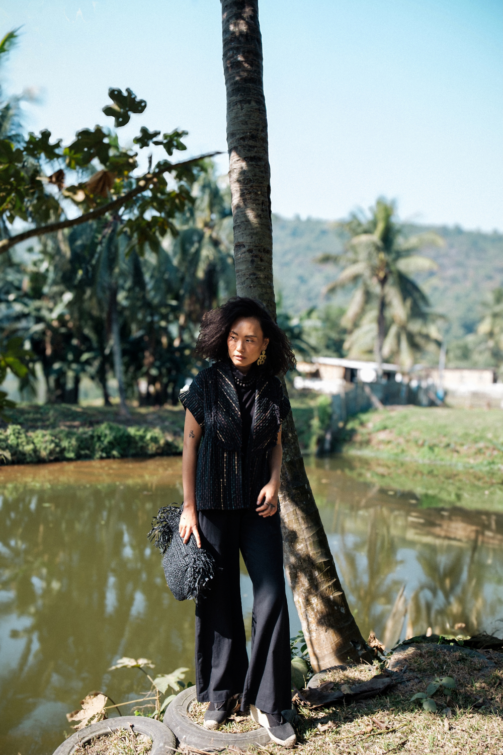 This shawl collar featuring a belt is designed from upcycled fabric, made using post production waste and can elevate any look. Our garments are dyed using pigments that do not cause any major harm to the environment in any manner. The garment is made from hand woven upcycled fabric and so the color might vary slightly for each batch. Peta approved vegan/Plant based clothing. For customization, please reach out to us.