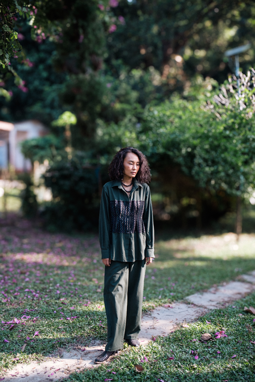 Charmee’s work doesn’t chase seasonal novelty. Instead, she builds garments through the lens of regenerative thinking: plant-based fibres, non-toxic dyes, biodegradable materials, conscious pattern-making, and silhouettes designed to circulate, not accumulate. Every piece begins with the question, “How lightly can we live?”