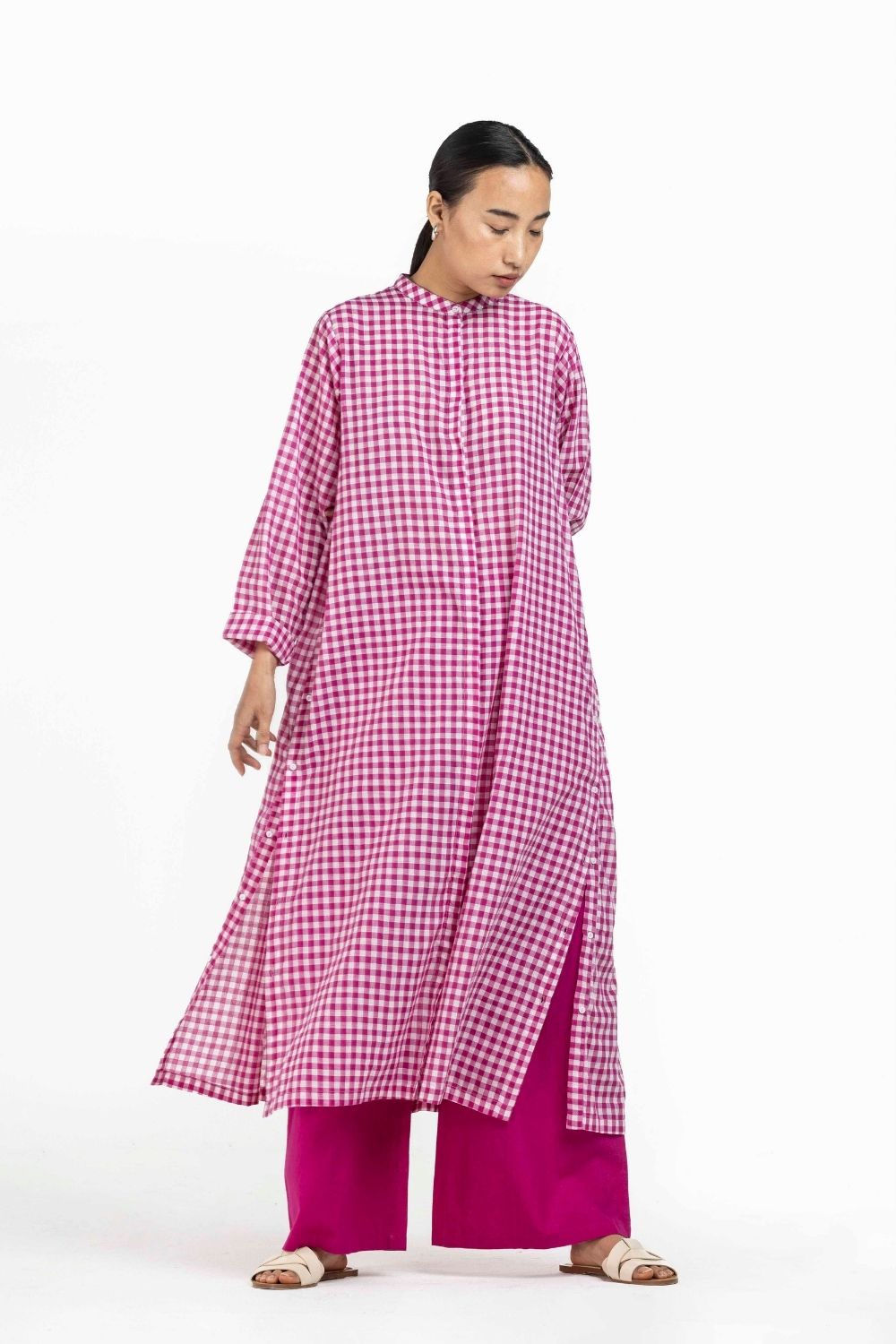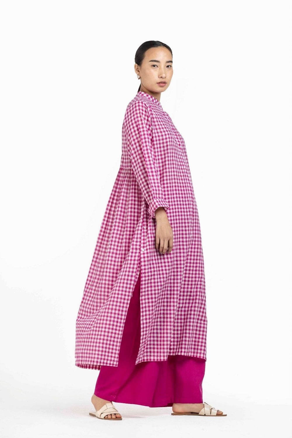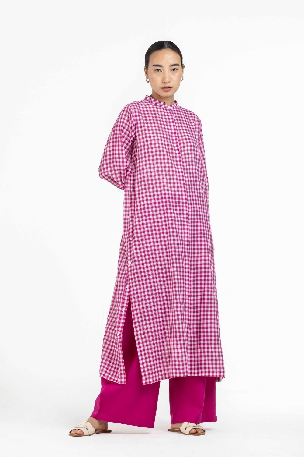 Co-ord Set of 2 contains: BACK GATHER JACKET HOT PINK CHECK��&��BROAD BOTTOM HOT PINK