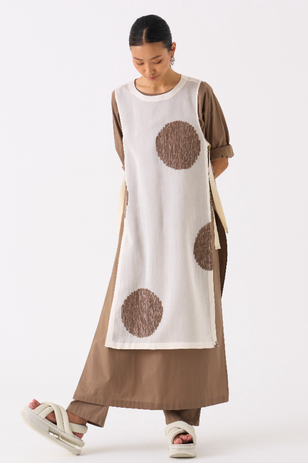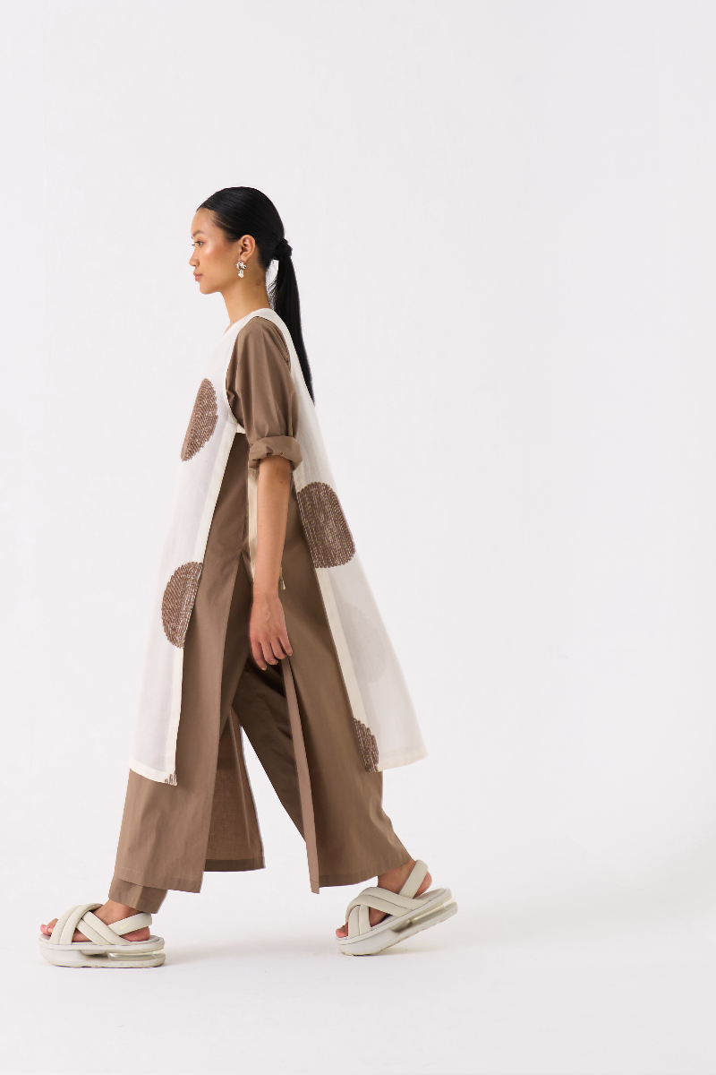 Clever cuts, asymmetric patterns, a neutral palette and simplicity of geometric details form the core aesthetic of the brand. Their love for asymmetry and imperfection clearly reflects in their silhouettes and hemlines. The label is a modern mix of conceptual and wearable clothing which defies age bar as the ensembles exude comfort, more so with their signature anti-fit coords.