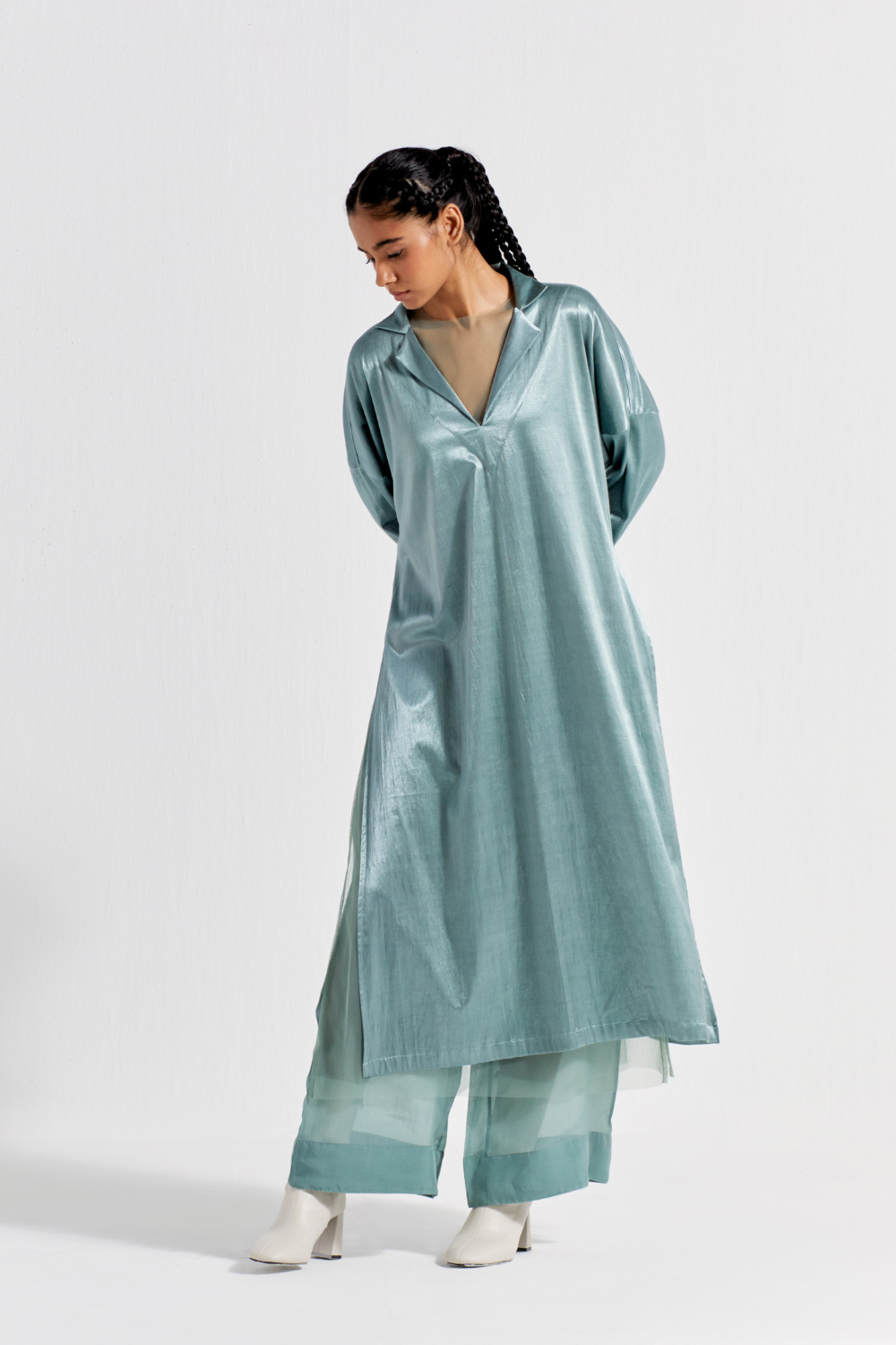 Clever cuts, asymmetric patterns, a neutral palette and simplicity of geometric details form the core aesthetic of the brand. Their love for asymmetry and imperfection clearly reflects in their silhouettes and hemlines. The label is a modern mix of conceptual and wearable clothing which defies age bar as the ensembles exude comfort, more so with their signature anti-fit coords.