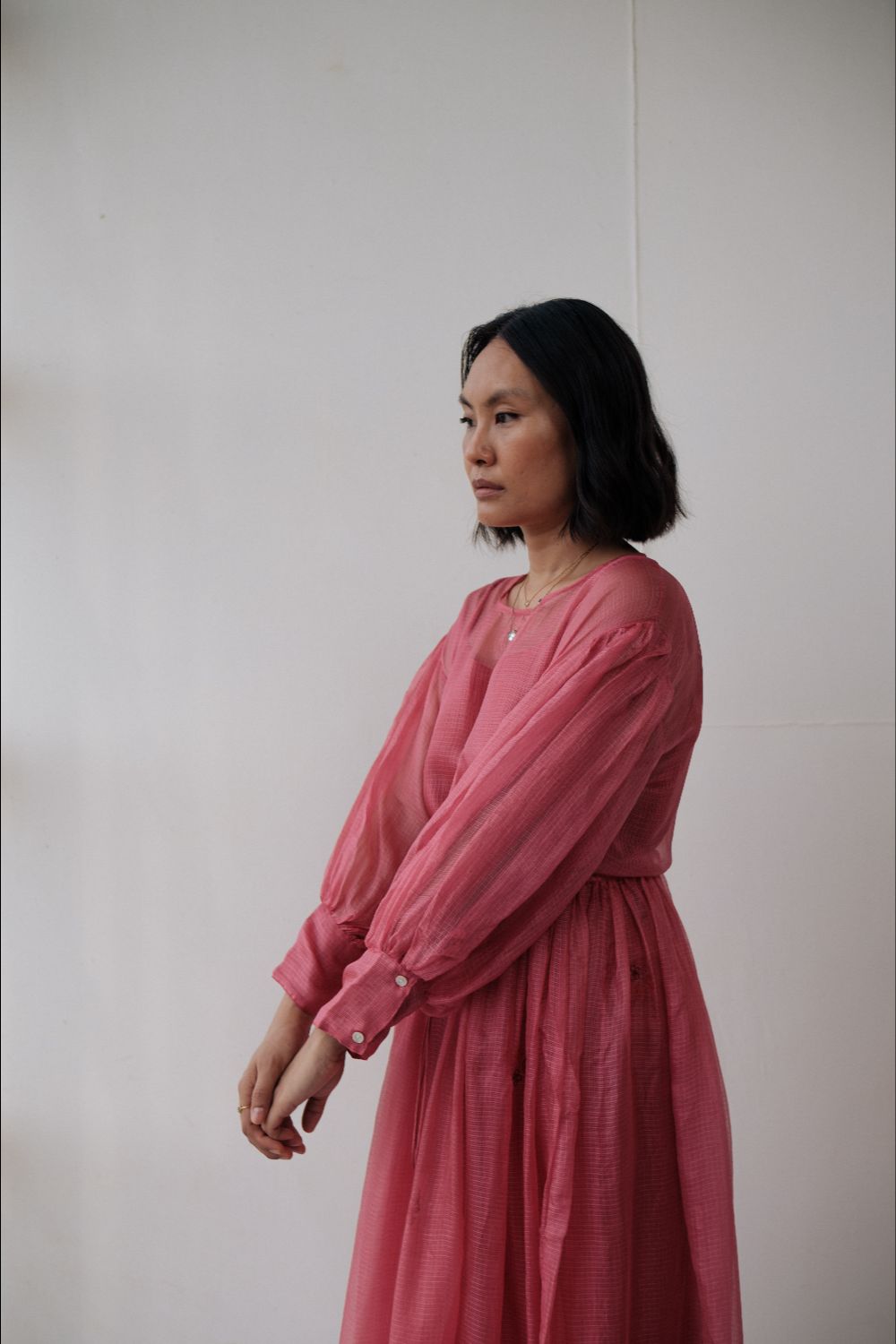The silhouettes are simple but considered: relaxed cuts, thoughtful details, and fabrics that breathe — from handwoven cottons to delicately finished textiles rooted in Rajasthan’s craft culture. Colours stay close to the earth: muted florals, soft neutrals, and tones that age gracefully rather than fall out of season.