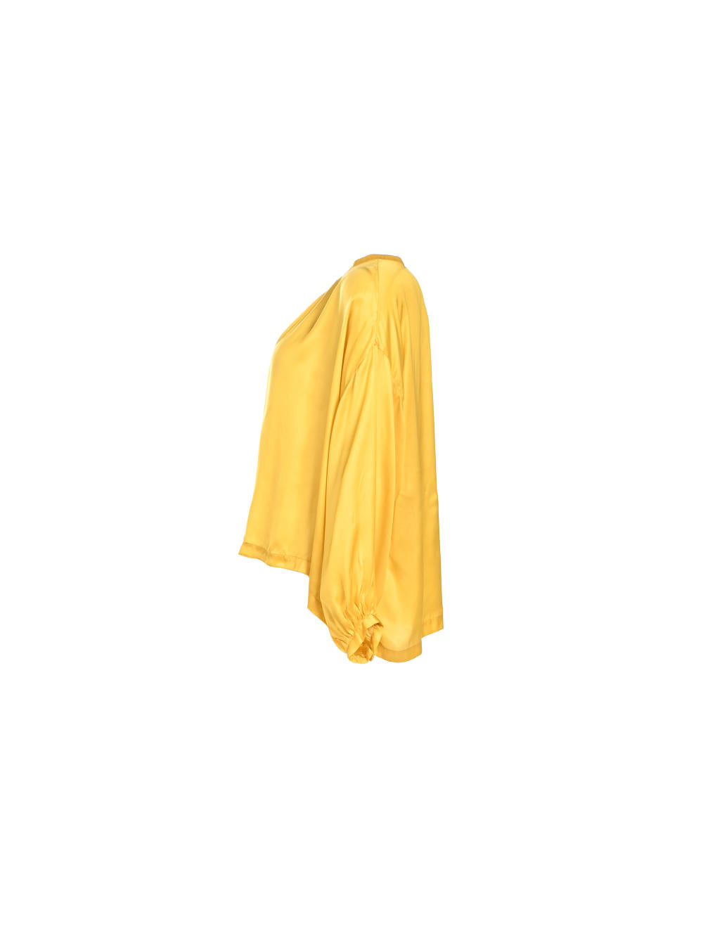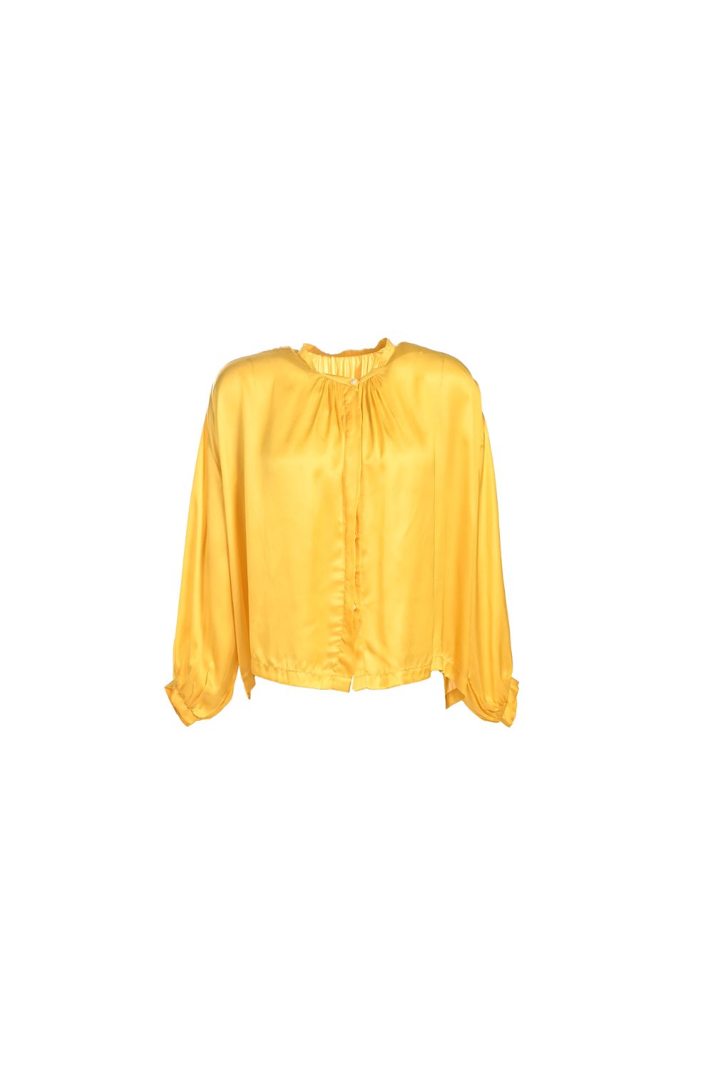 Satin shirt with front buttons made with mother of pearl.This top has front pleats and fits loosely.