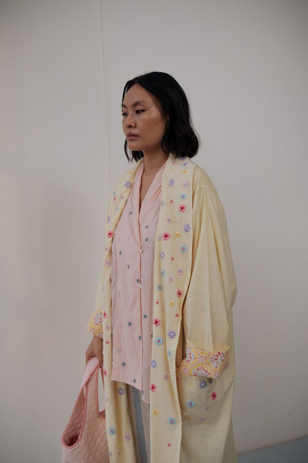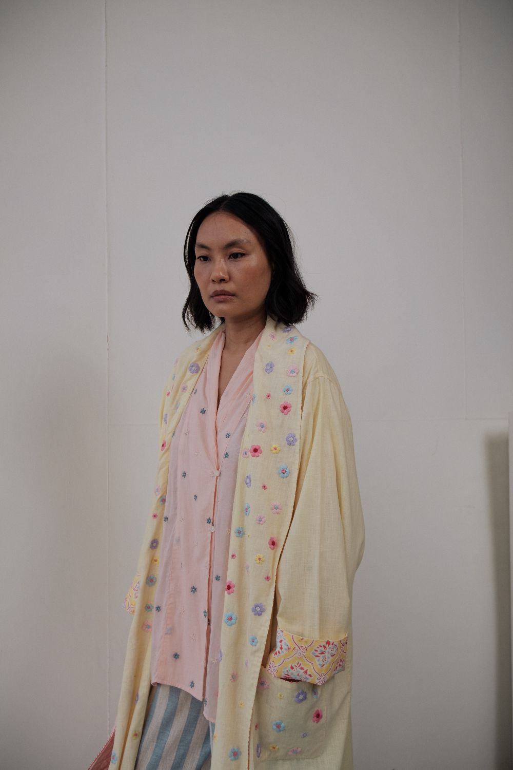 Jacket in zaika cotton hand embroidered with multicolor flowers by our in house artisans.