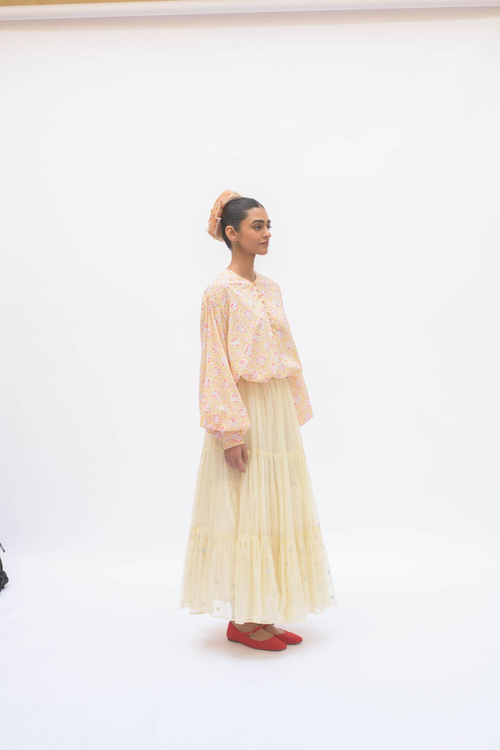 The silhouettes are simple but considered: relaxed cuts, thoughtful details, and fabrics that breathe — from handwoven cottons to delicately finished textiles rooted in Rajasthan’s craft culture. Colours stay close to the earth: muted florals, soft neutrals, and tones that age gracefully rather than fall out of season.