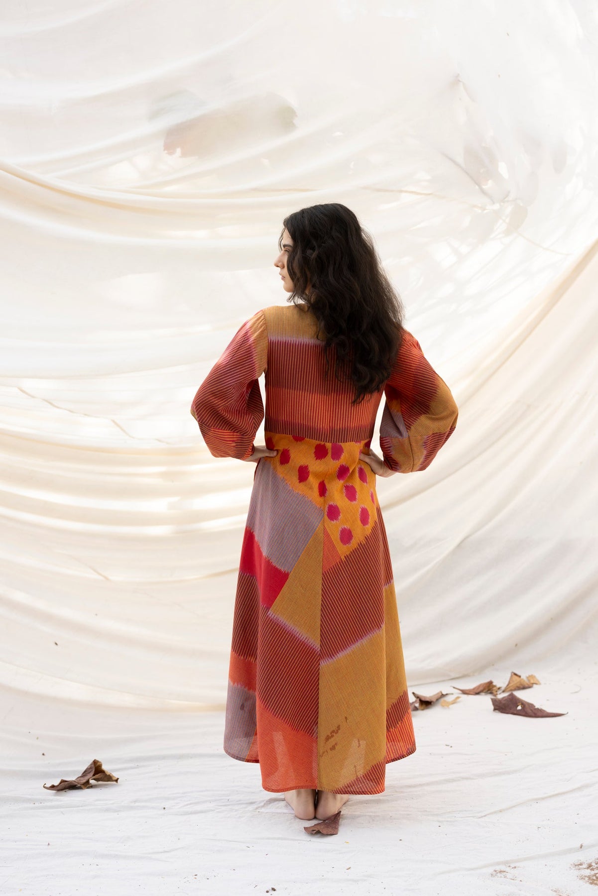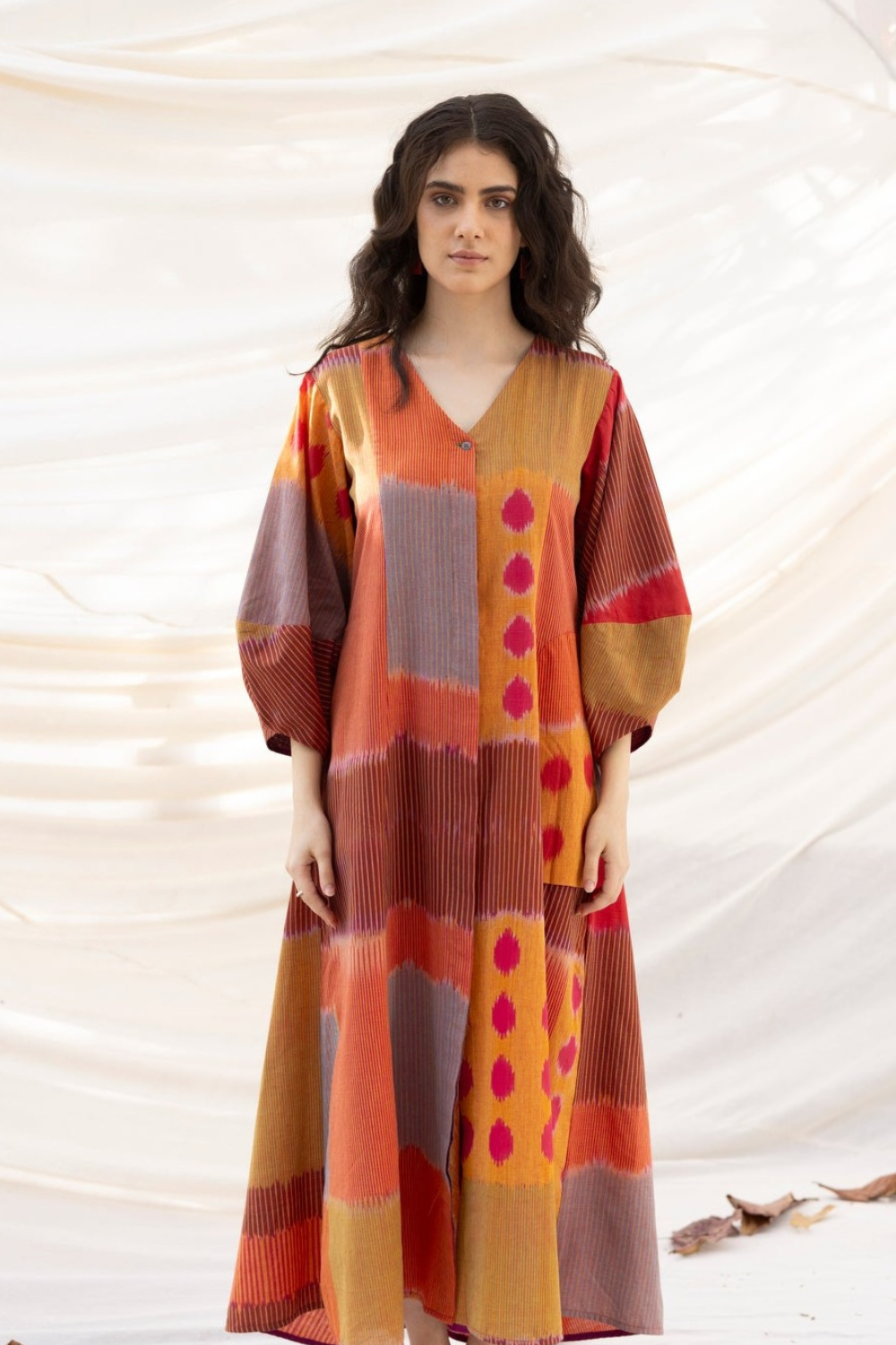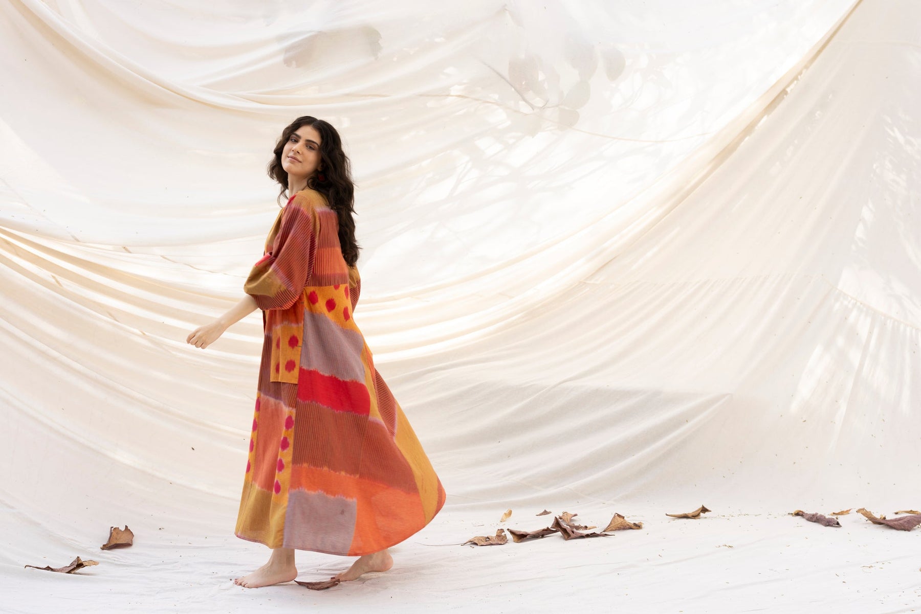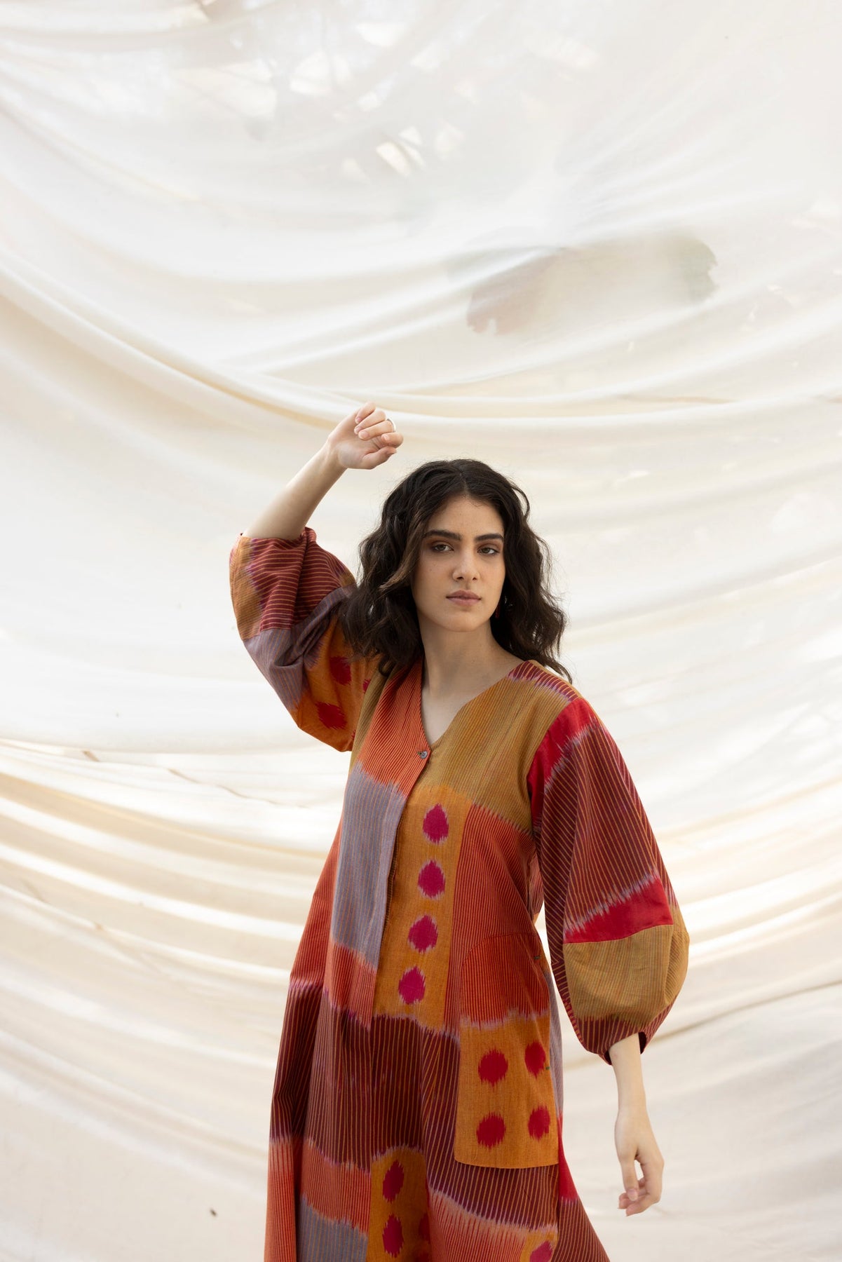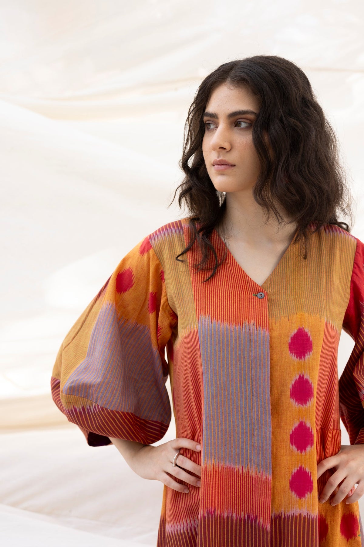 Our "ANG"' Ikat pattern beautifully captures the vibrant richness of color that harmonizes with the lively spirit of basant. The twirl dress offers: