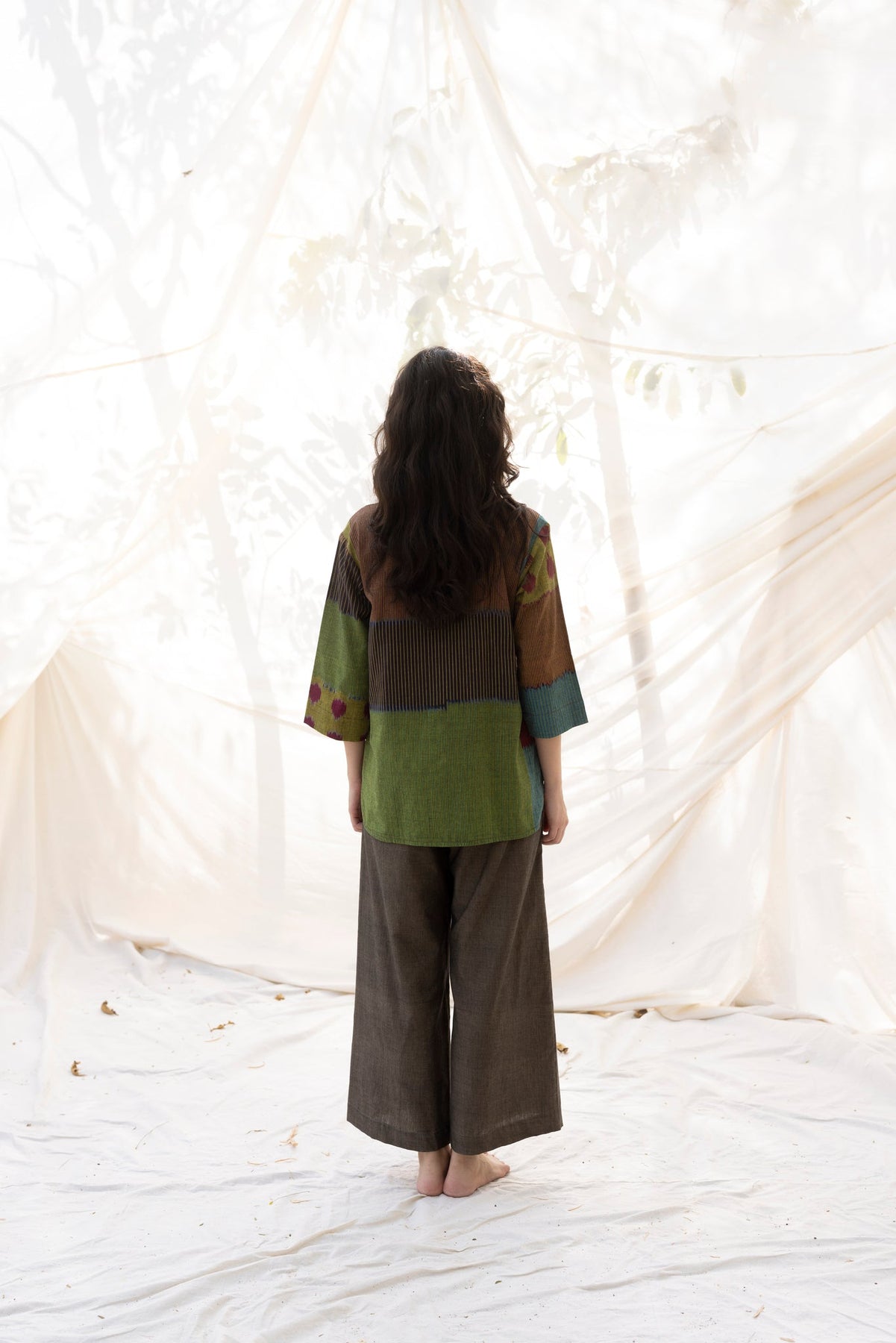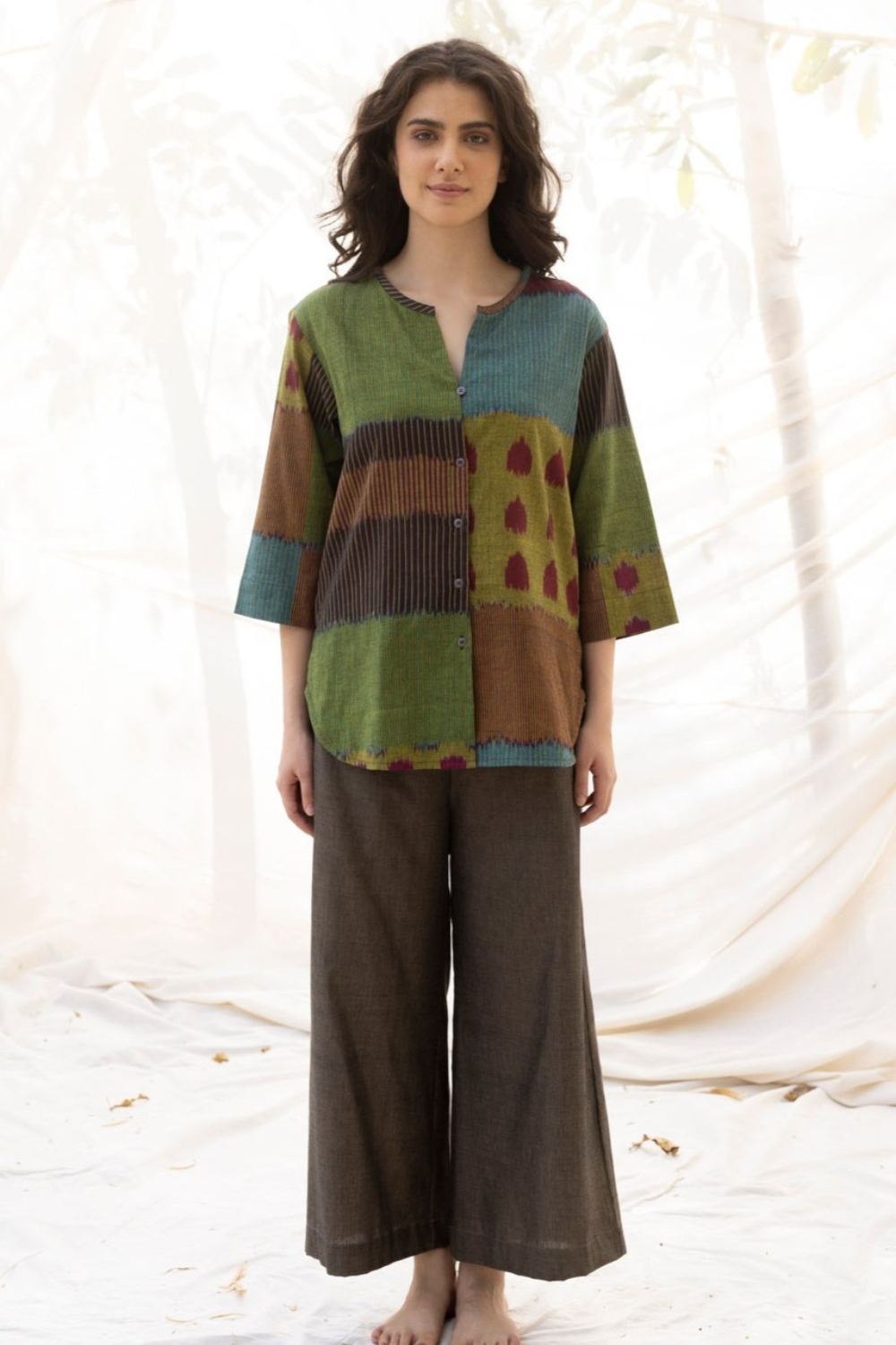 The 'TAAL' Ikat pattern captures the rhythmic essence of spring. The top features: