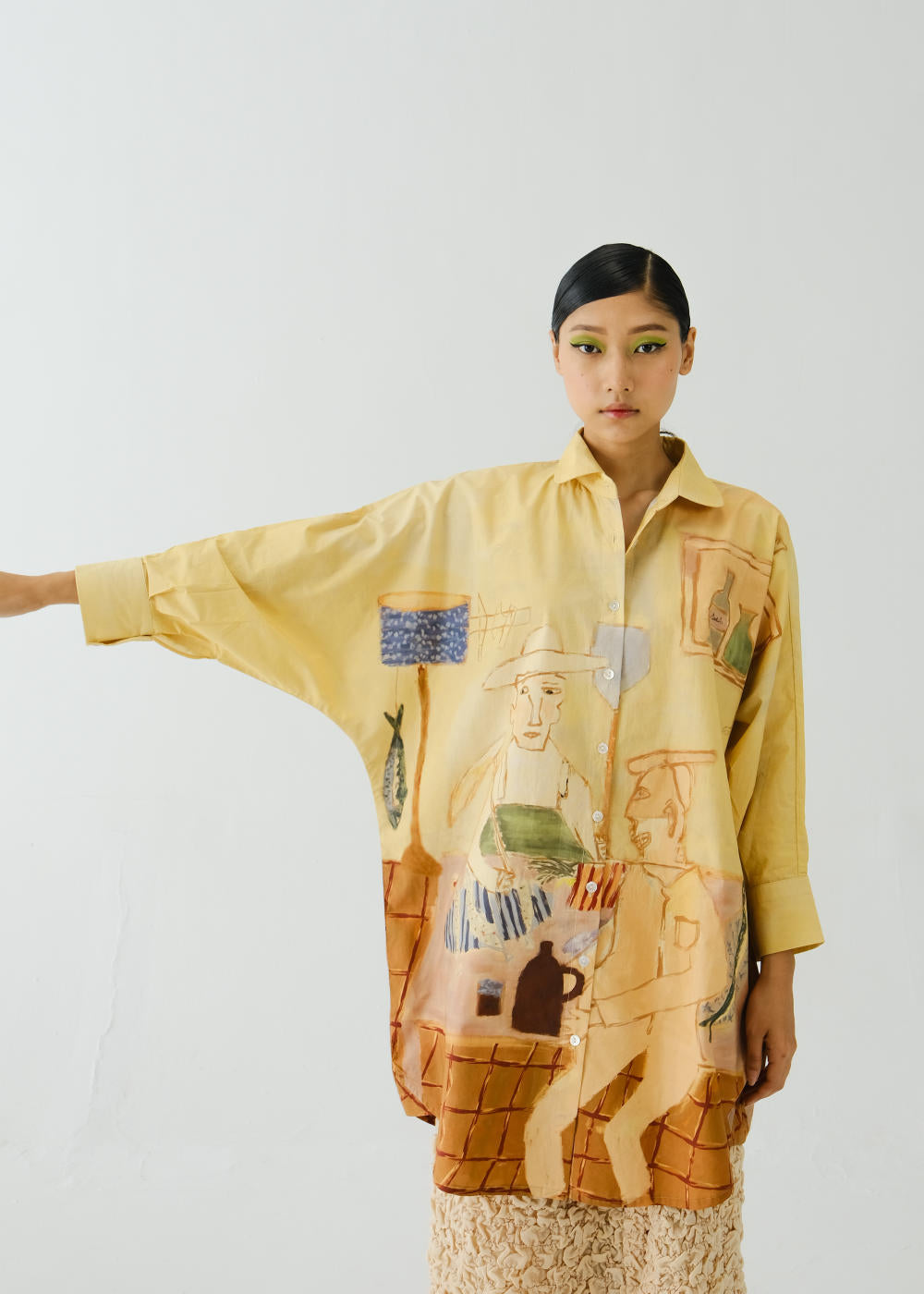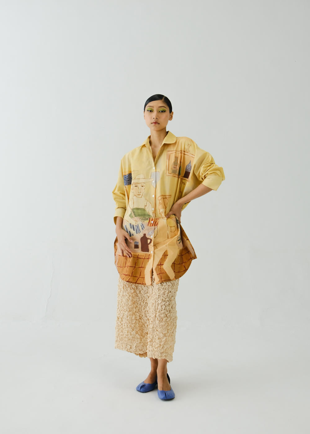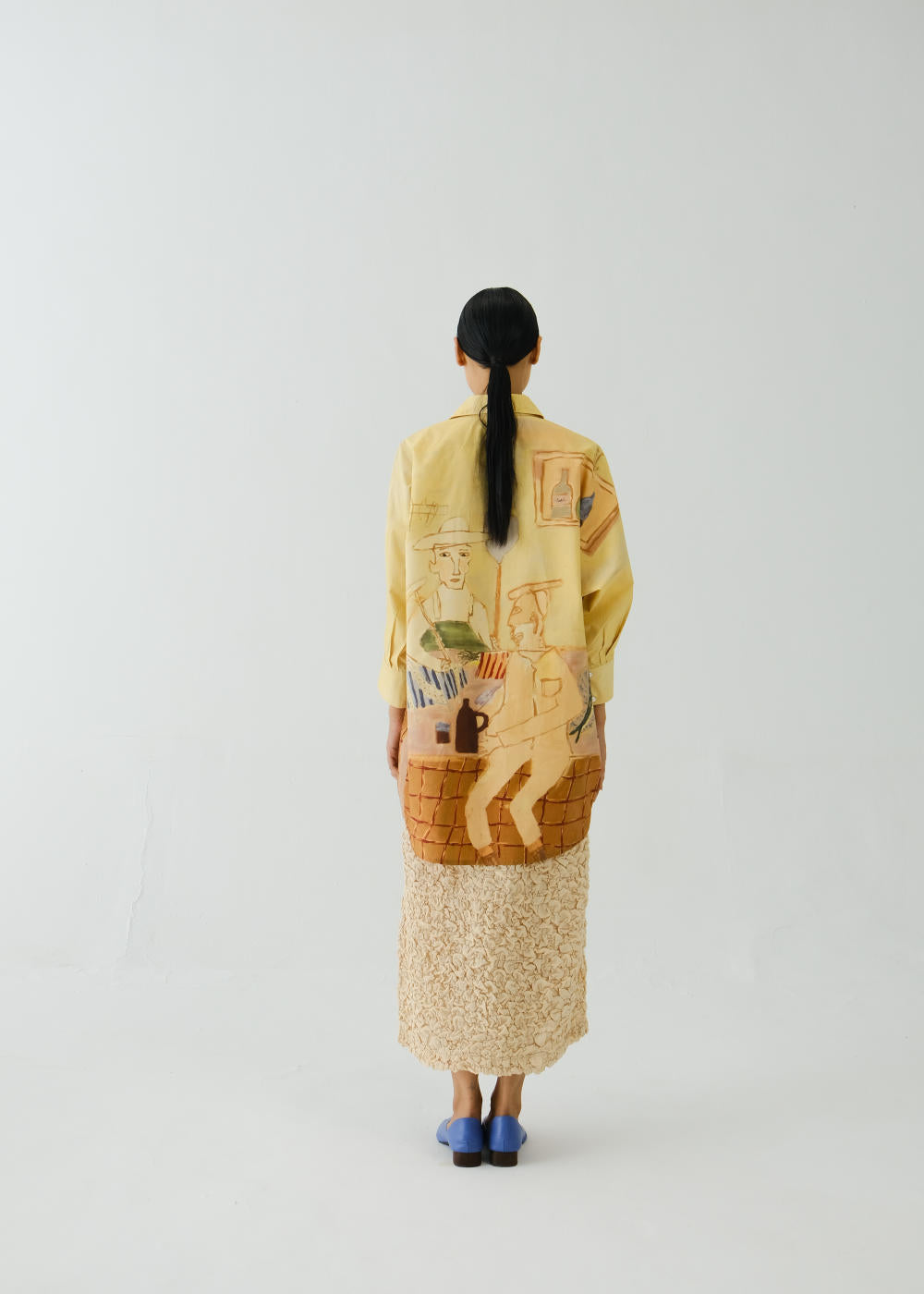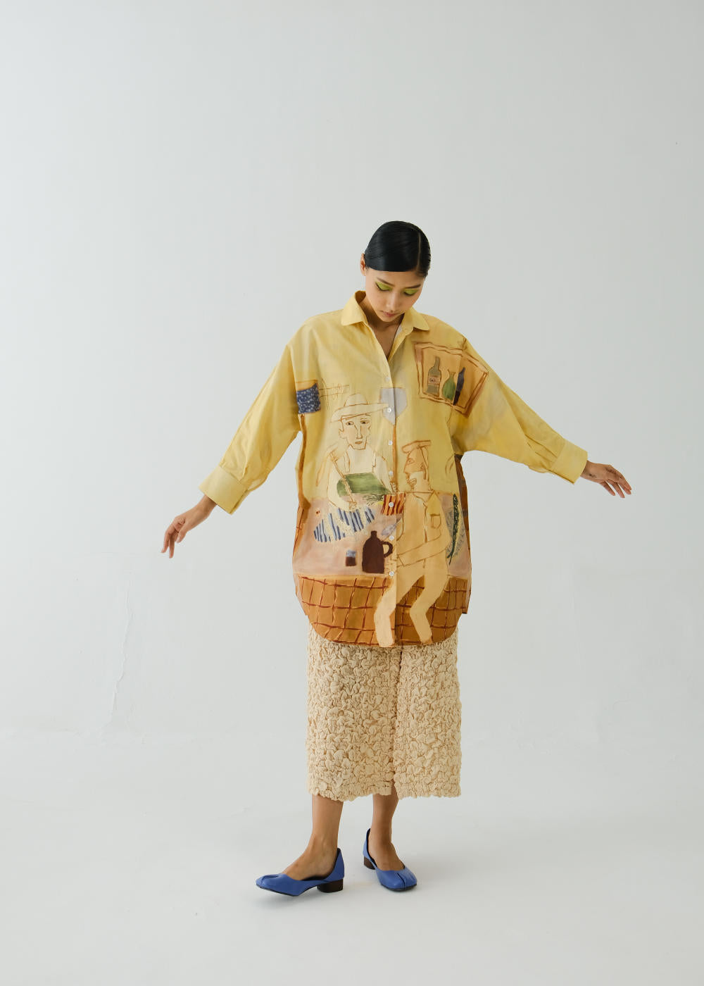CORD blurs the line between art and attire in a way few labels dare to. Here, fabrics become canvases; illustrations—drawn by hand, steeped in imagination—flow across silhouettes that feel sculptural yet deeply wearable. Each piece has a texture of memory to it, as if it carries echoes of a past life, now reframed for a contemporary world.
