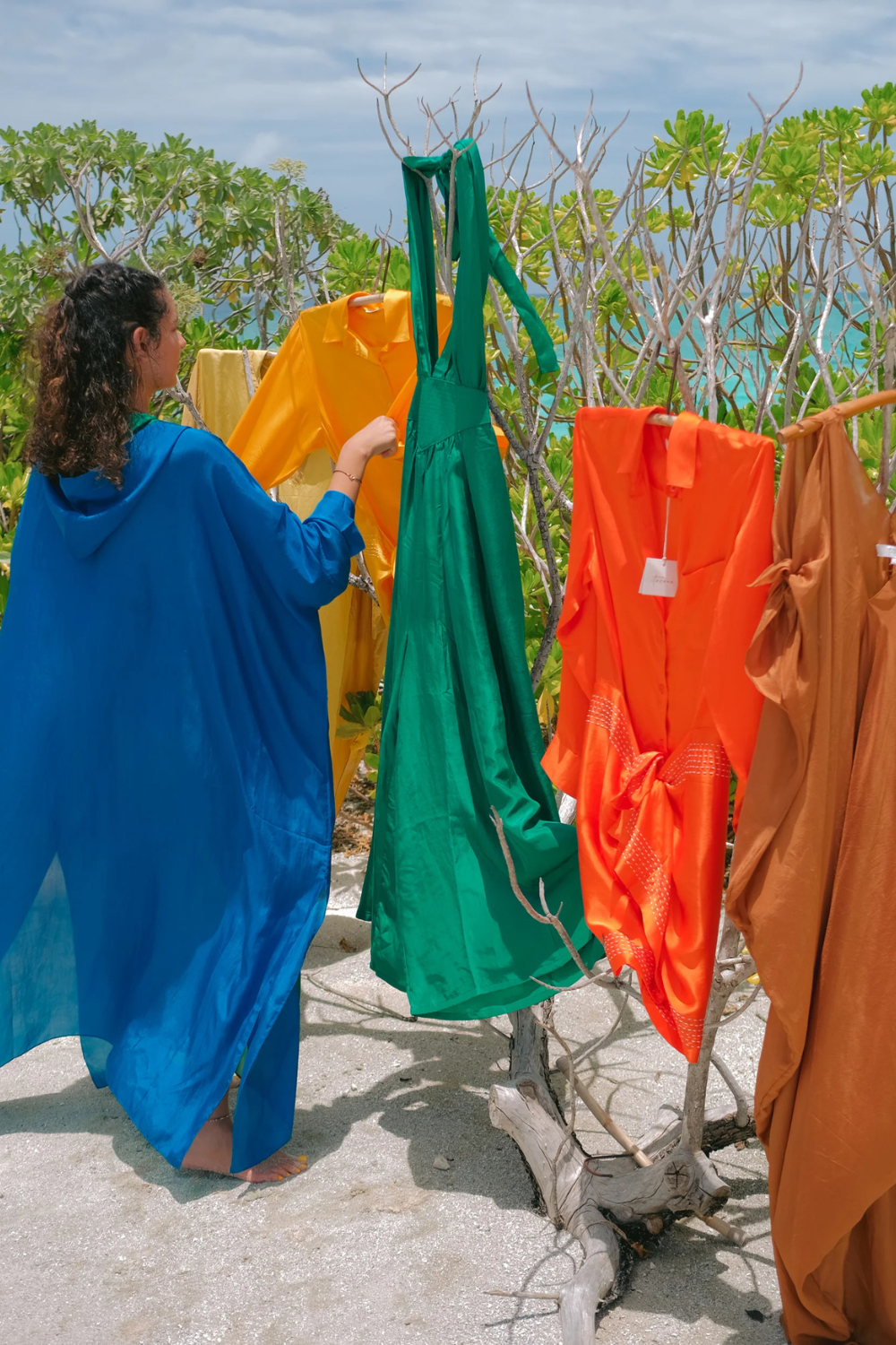 The brand’s silhouettes are thoughtfully designed to flow with you, not against you. From versatile dhoti pants that transform into dresses to garments inspired by ancient techniques like kantha handwork, Ituvana redefines how clothes can move with the rhythms of life.