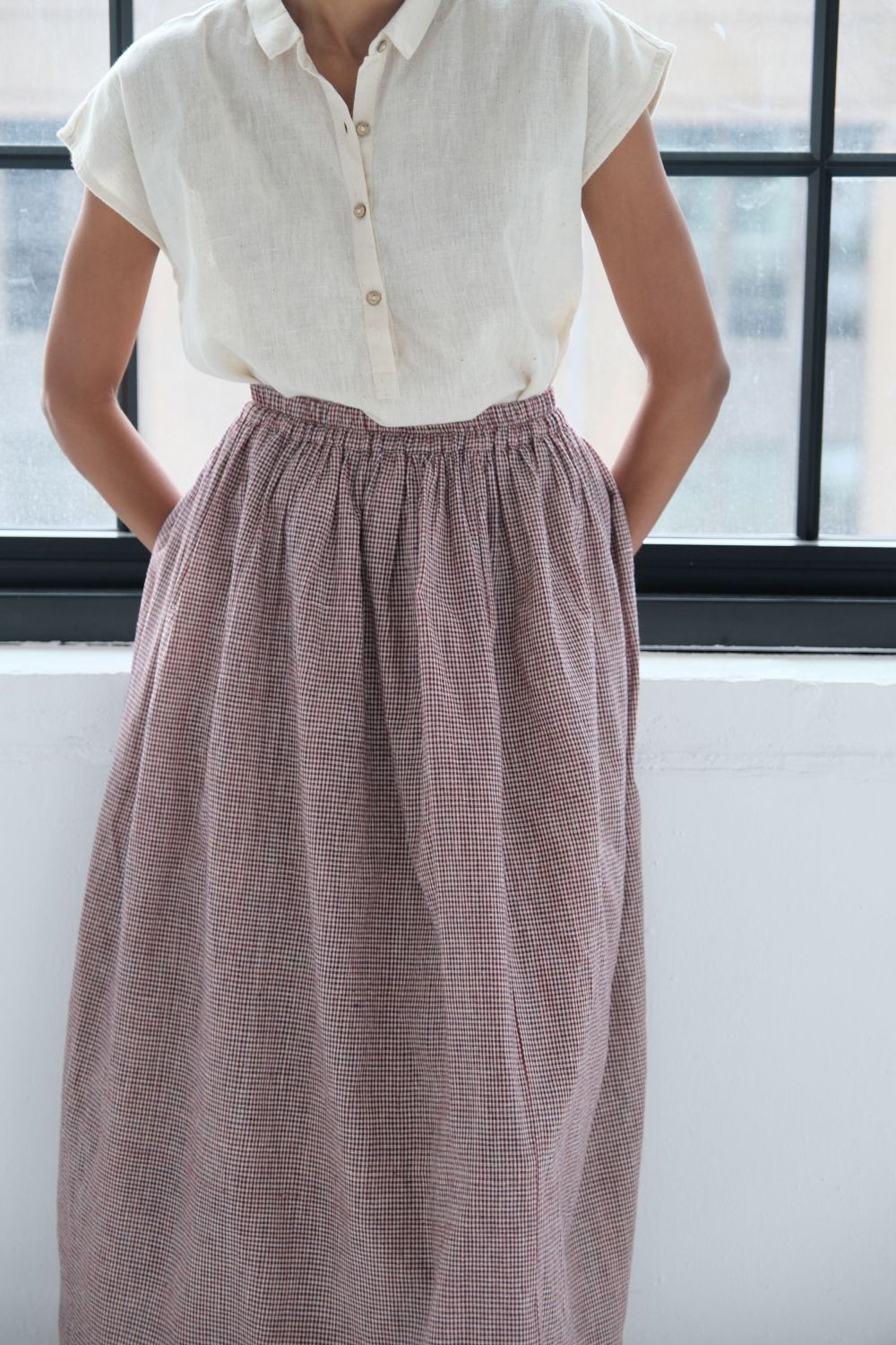 Their silhouettes—relaxed, modern, quietly poetic—carry a language of ease and intention. Natural dyes, azo-free pigments, and slow-woven textiles result in garments that feel honest: soft on the skin, kind to the earth, and deeply respectful of the communities who create them. Each piece is cut and stitched only when ordered, honouring the principle that beauty need not come at the cost of excess.