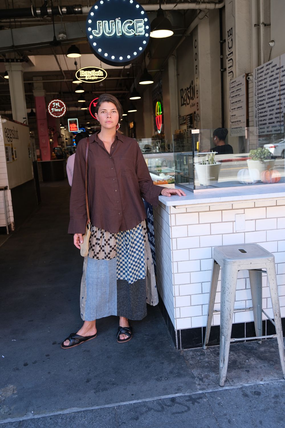Their silhouettes—relaxed, modern, quietly poetic—carry a language of ease and intention. Natural dyes, azo-free pigments, and slow-woven textiles result in garments that feel honest: soft on the skin, kind to the earth, and deeply respectful of the communities who create them. Each piece is cut and stitched only when ordered, honouring the principle that beauty need not come at the cost of excess.