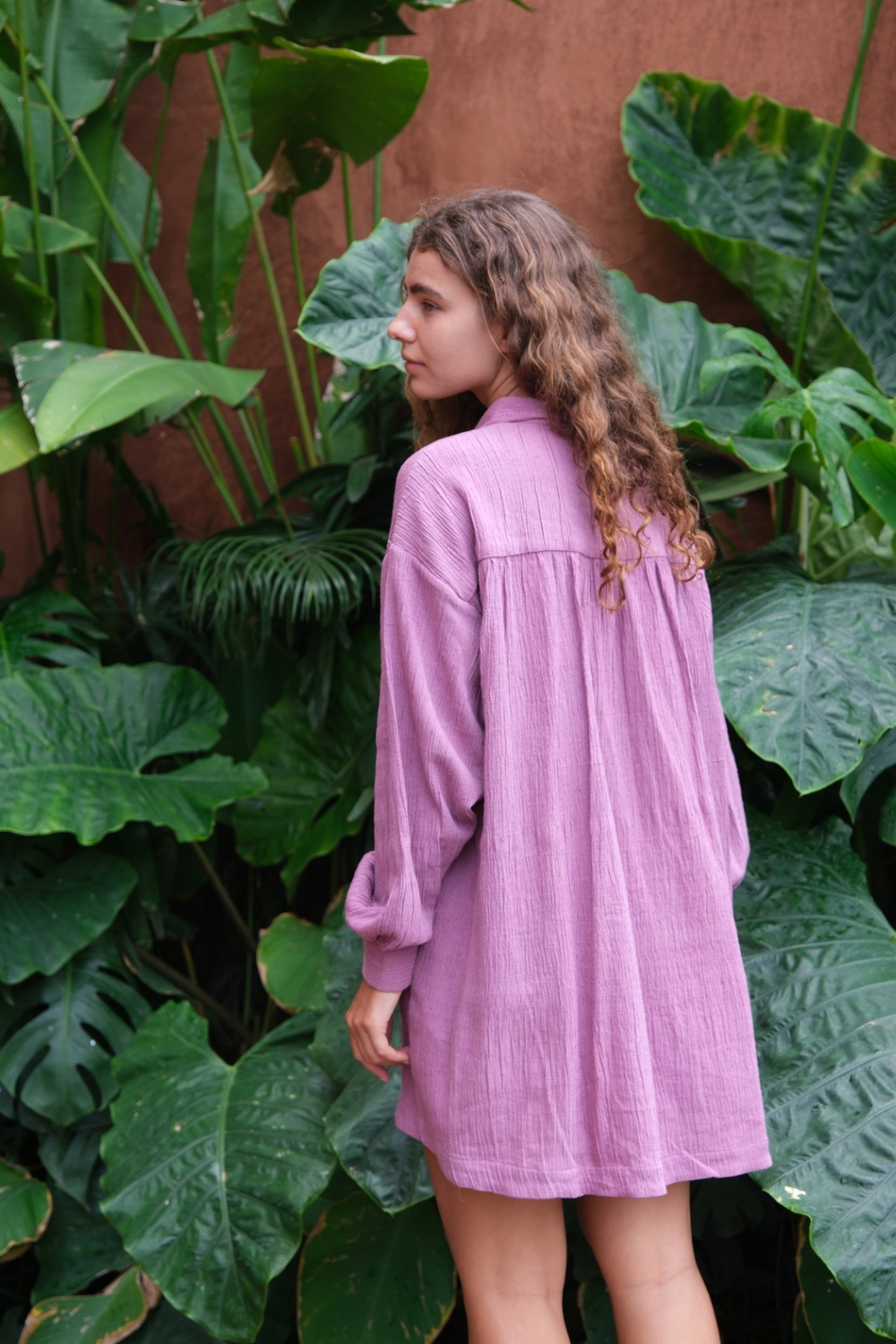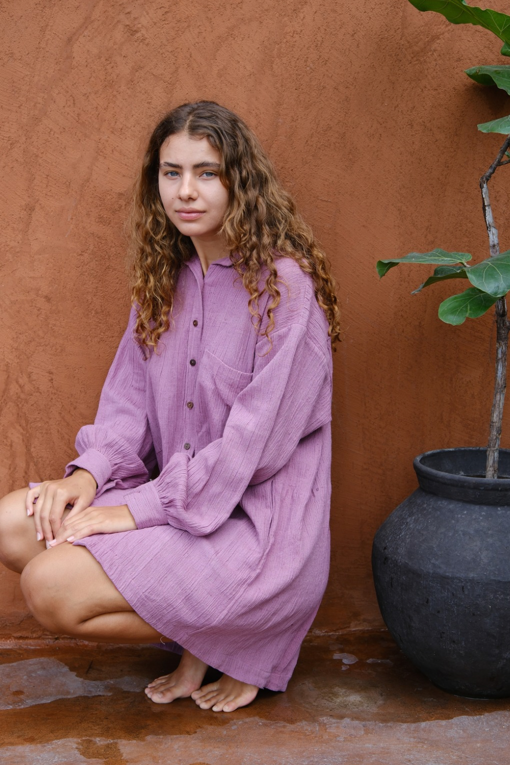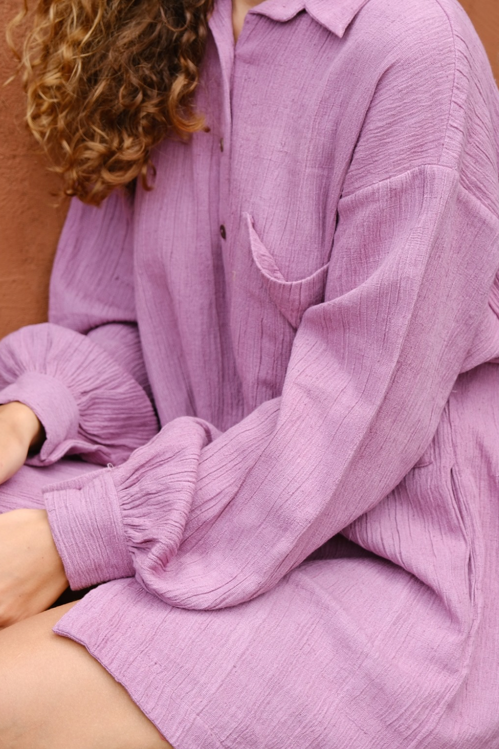 Their silhouettes—relaxed, modern, quietly poetic—carry a language of ease and intention. Natural dyes, azo-free pigments, and slow-woven textiles result in garments that feel honest: soft on the skin, kind to the earth, and deeply respectful of the communities who create them. Each piece is cut and stitched only when ordered, honouring the principle that beauty need not come at the cost of excess.