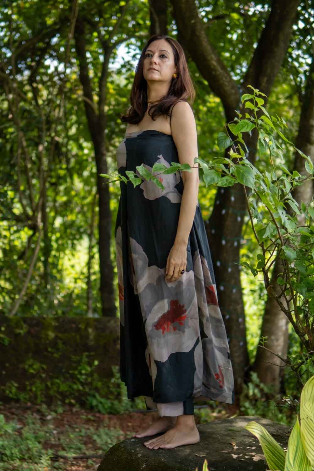 Priya’s strength lies not just in the imagery she creates, but in how she translates it onto silhouettes that honour real bodies. Her pieces are designed with ease and movement in mind — styles that drape, soften, and adapt effortlessly across sizes and shapes. Nothing feels intimidating; everything feels wearable.