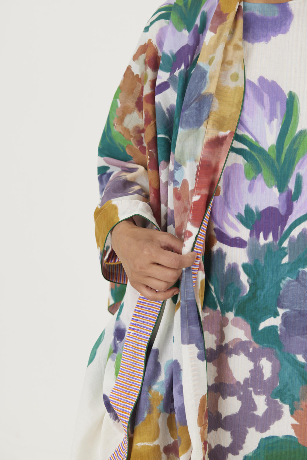 Priya’s strength lies not just in the imagery she creates, but in how she translates it onto silhouettes that honour real bodies. Her pieces are designed with ease and movement in mind — styles that drape, soften, and adapt effortlessly across sizes and shapes. Nothing feels intimidating; everything feels wearable.