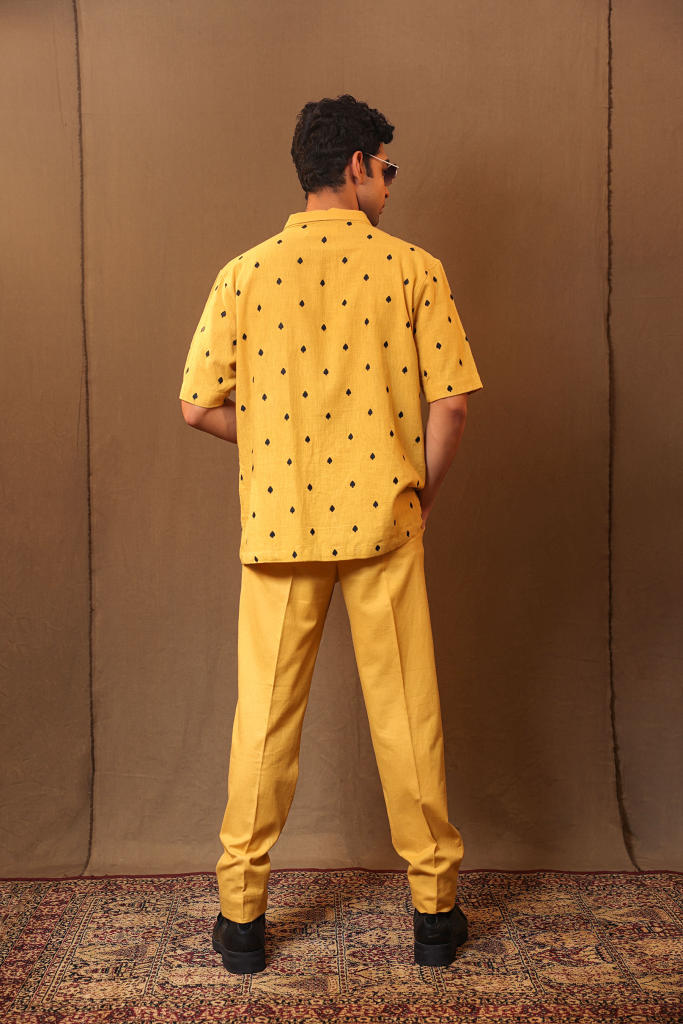 Overlap jacket style shirt made in embroidered handspun kala cotton. Team it up with the straight pants to complete the look.