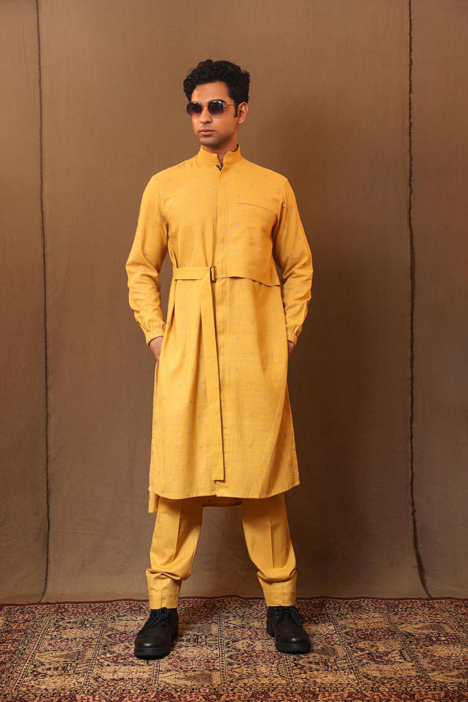 Mustard Zari Club EMB Belted Kurta