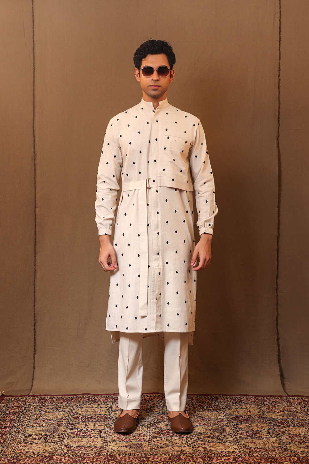 Off-White Spade EMB Belted Kurta Set (2 PCS)