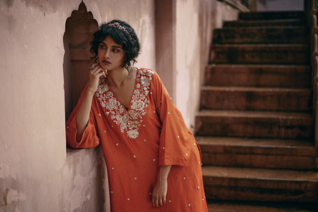 At the heart of the brand lies a quiet but firm commitment: to build real patronage for India’s craft ecosystems. Each piece passes through the hands of artisans who keep ancient techniques alive, and every motif carries a lineage of skill, memory, and intention. This is ornamentation with purpose — beauty backed by heritage.