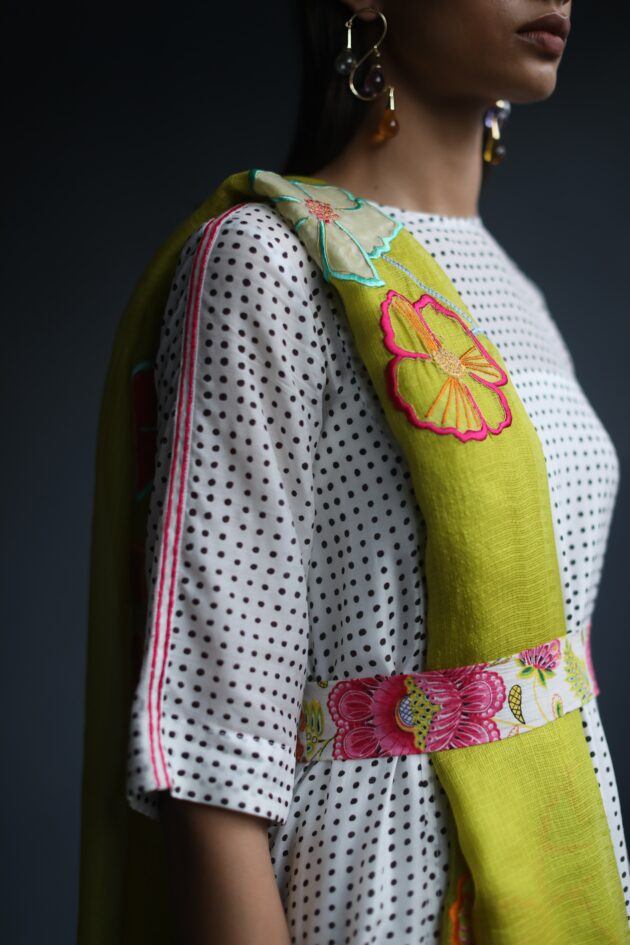 Their work is an ode to handcrafted Indian design — rooted in traditional embroidery techniques like zardozi, dabkaa, and fine threadwork, yet shaped into silhouettes that feel refreshingly contemporary. Clean cuts, relaxed forms, pure fabrics, and a distinctive palette come together to create pieces that travel seamlessly from India to Singapore and beyond.