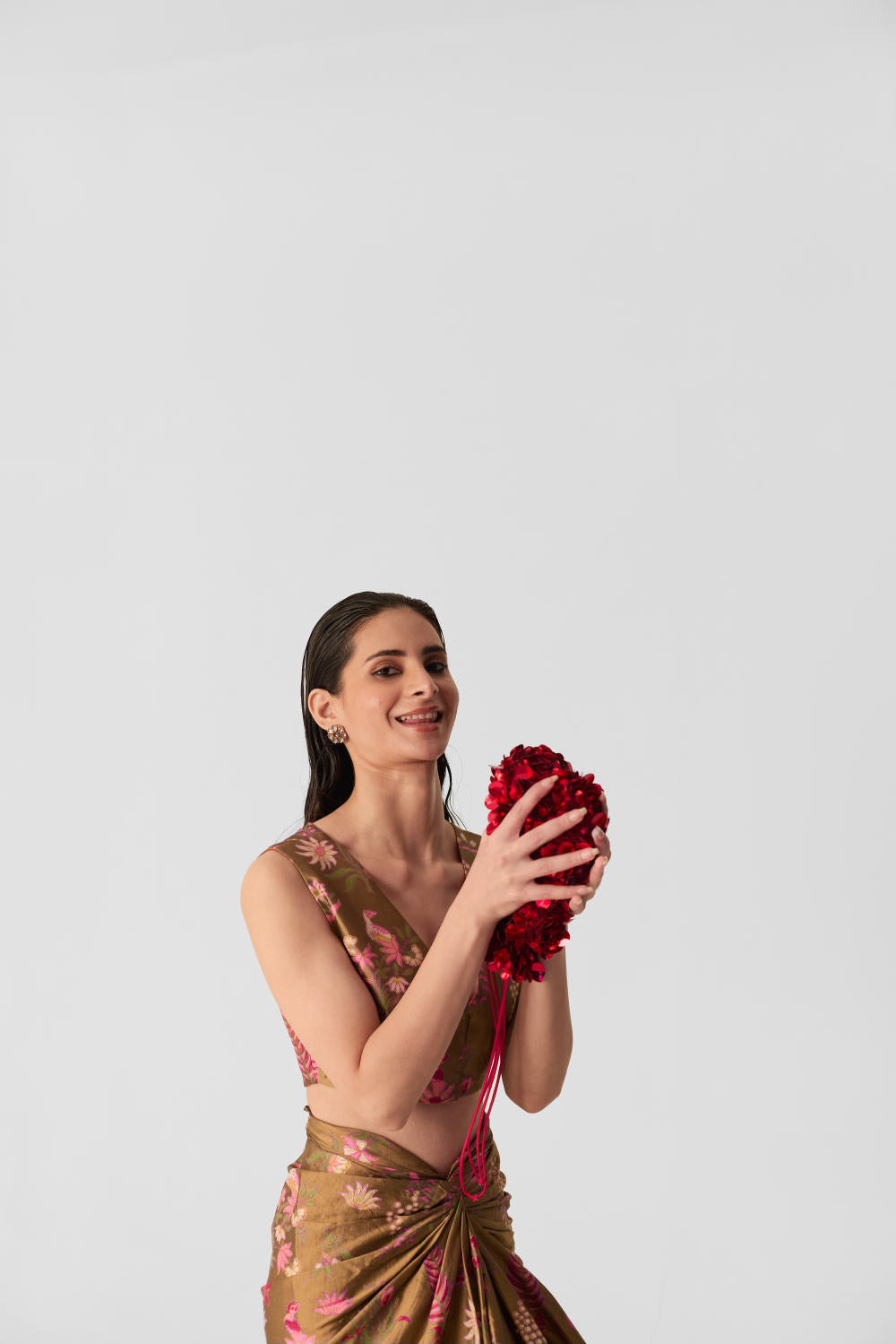 Priya’s strength lies not just in the imagery she creates, but in how she translates it onto silhouettes that honour real bodies. Her pieces are designed with ease and movement in mind — styles that drape, soften, and adapt effortlessly across sizes and shapes. Nothing feels intimidating; everything feels wearable.