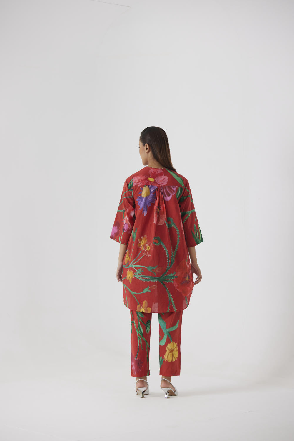 The set includes a short kurta and pant.