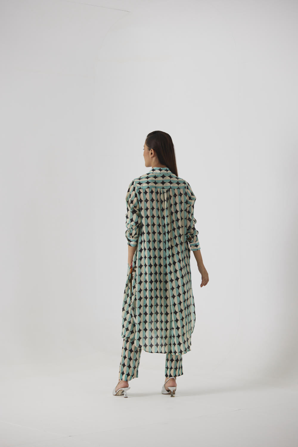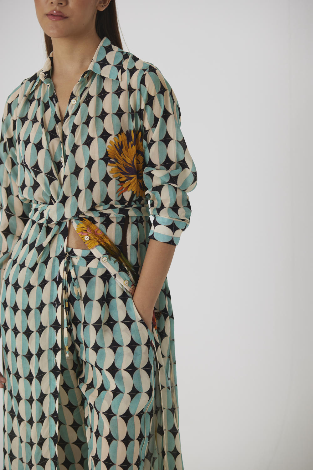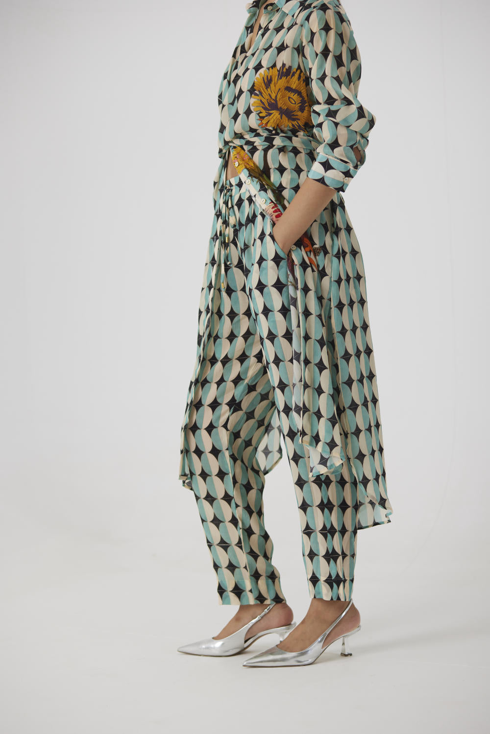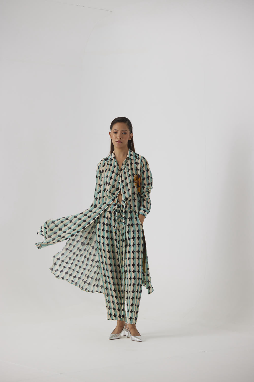 Experience the allure of Japanese craftsmanship with our Gifu-inspired tile print. Hand-drawn sunflowers grace this crepe kurta and pants set, fusing Eastern elegance with comfort